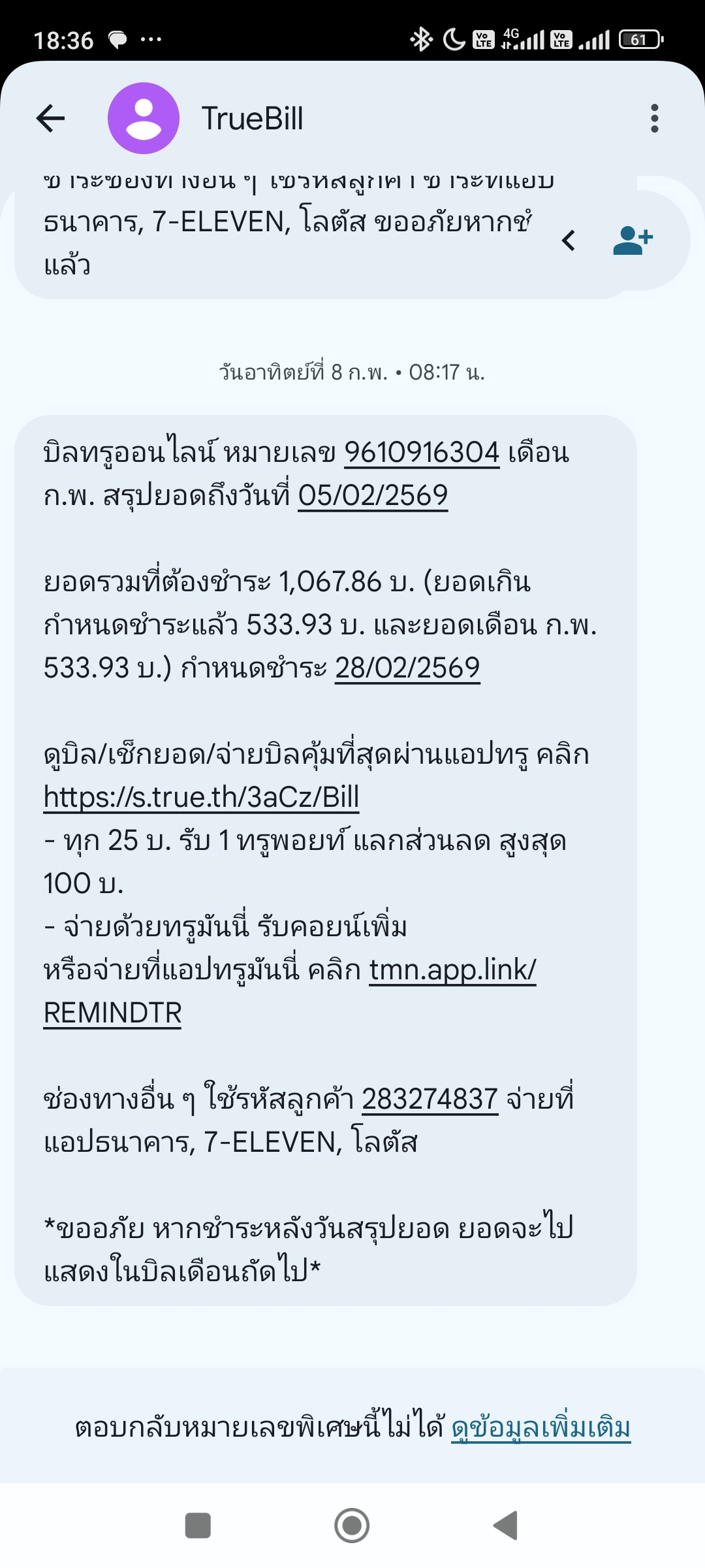 ทำไมถึงเสียค่าบิลทรูเพิ่ม?