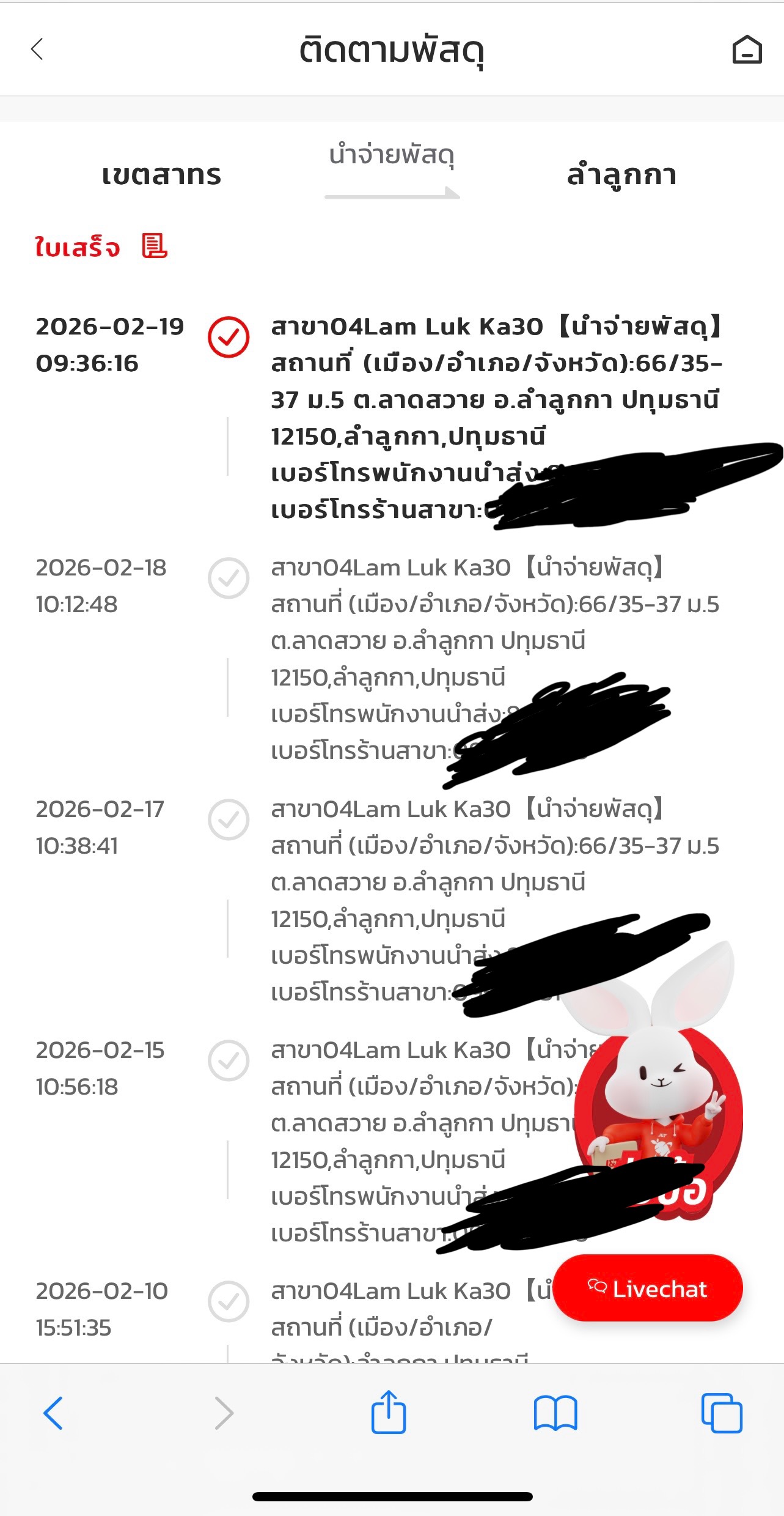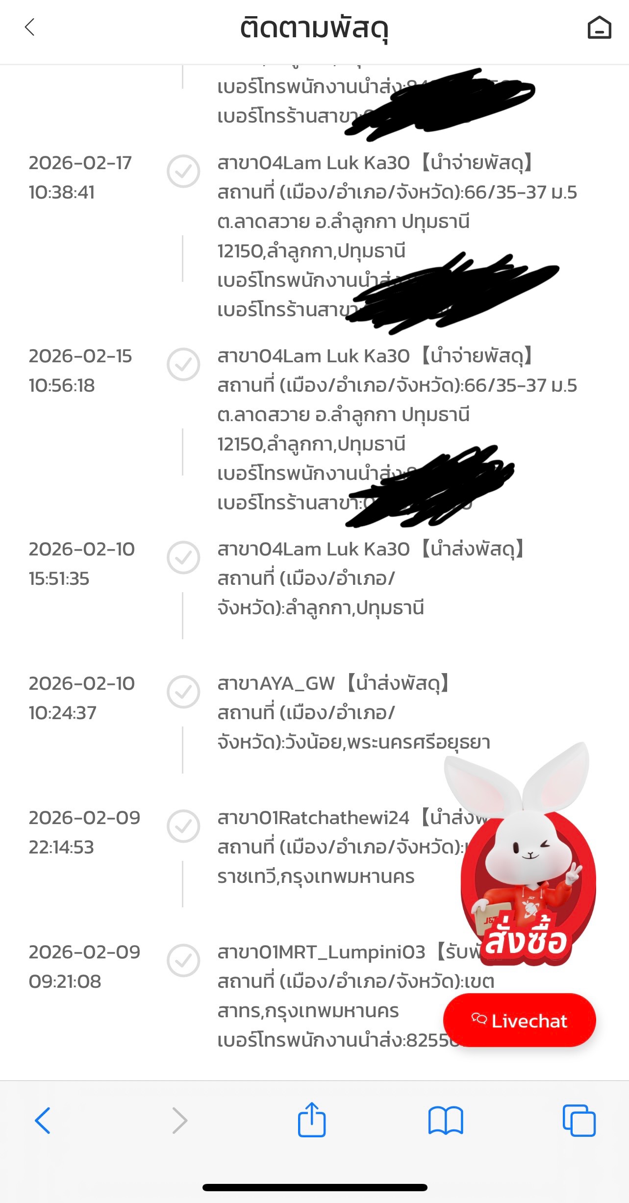 สถานะก็ขึ้นซ้ำๆไปแต่ละวันๆโทรไปทั้งส่วนกลาง ที่เบอร์ในสถานะจัดส่งทั้งสาขา ทั้งผู้นำจ่ายก็ไม่มีคนรับสายเลย