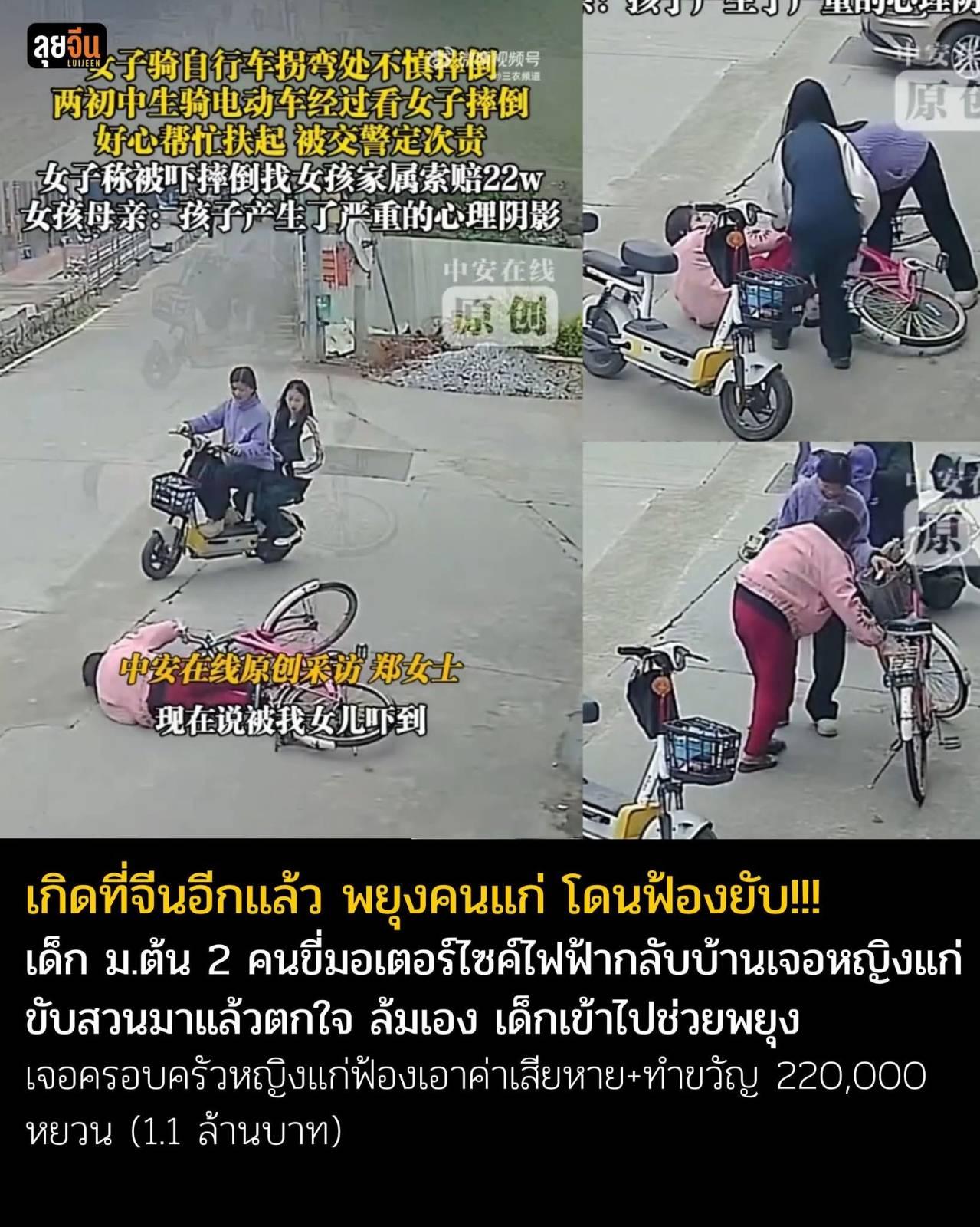 ไวรัลในจีน เมื่อนักเรียนหญิง ม.ต้น 2 คนที่มณฑลฝูเจี้ยนกำลังขี่มอเตอร์ไซค์ไฟฟ้ากลับบ้าน ระหว่างเข้าโค้งเจอหญิงชราขี่จักรยานล้มเองต่อหน้า