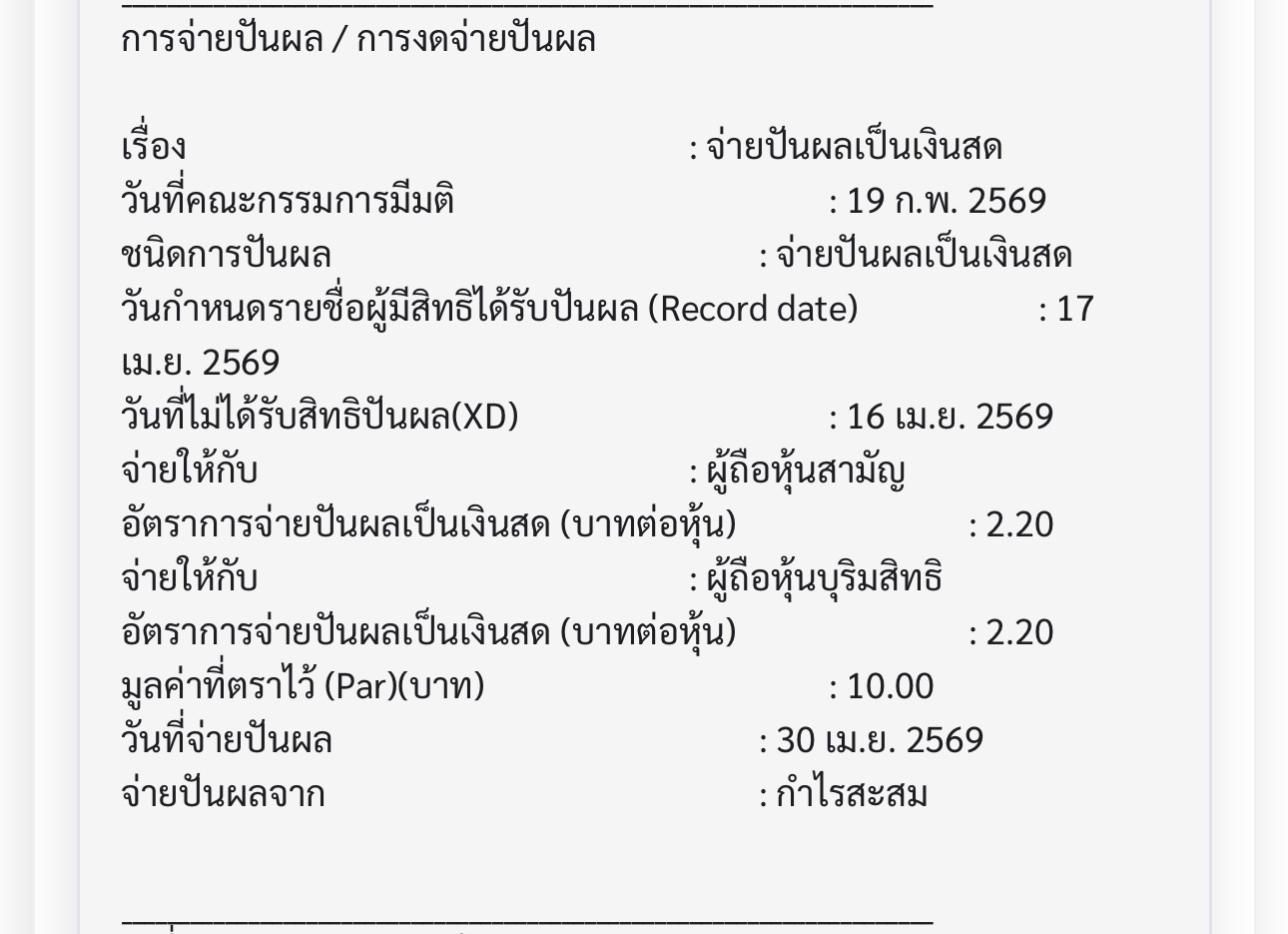 KEY POINTS ทรู คอร์ปอเรชั่น (TRUE) พลิกกลับมาทำกำไรสุทธิปี 2568 ไว้ที่ 9.2 พันล้านบาท ประกาศจ่ายเงินปันผลปี 2568 รวม 0.31 บาทต่อหุ้น คิดเป็นอัตราจ่ายสูงถึง 116% ของกำไรสุทธิ สะท้อนความเชื่อมั่นในกระ