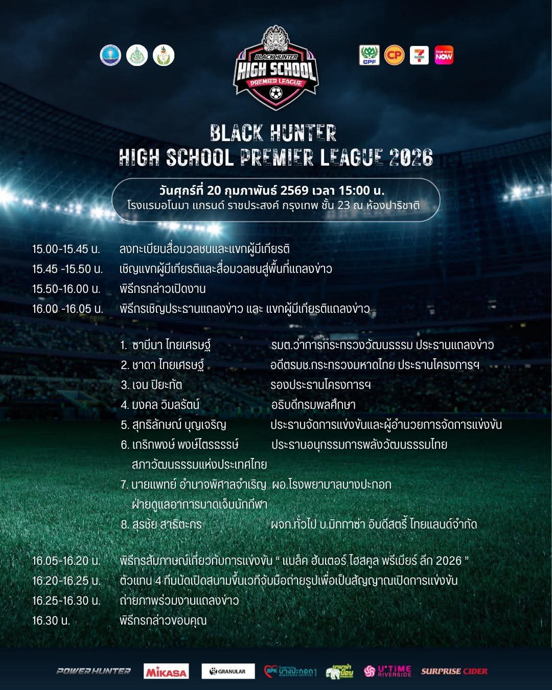 l มาแล้ว 'ไฮสคูล พรีเมียร์ ลีก 2026' วันนี้แถลงข่าวเปิดตัวบ่าย 3 ---ให้กำลังใจฟุตบอลขาสั้น รวมโรงเรียนซูเปอร์สตาร์ !!!