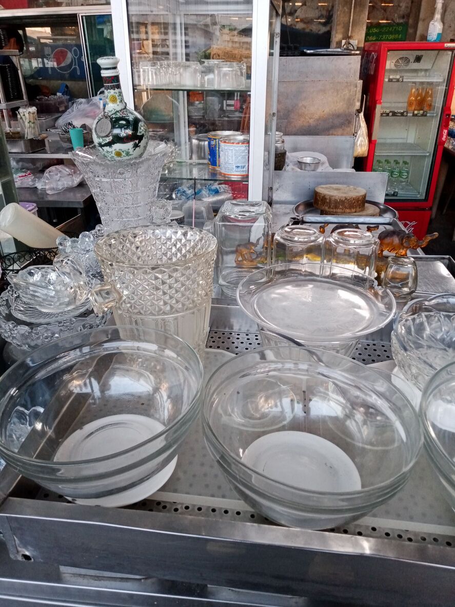 มีเครื่องแก้วเก๋ ๆ  ตั้งโชว์ไว้