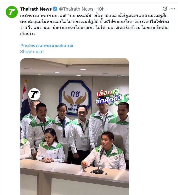 “ร.อ.ธรรมนัส” ลั่น โว ผลงานเอาสินค้าเกษตรไปขายเอง ไม่ใช่ ศุภจี
