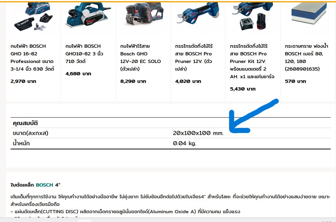 พบโฆษณาใบหินเจียร์ของร้านดังออนไลน์ตามภาพข้างล่าง มันหมายถึงส่วนไหนครับ 20x100x100 ?.
