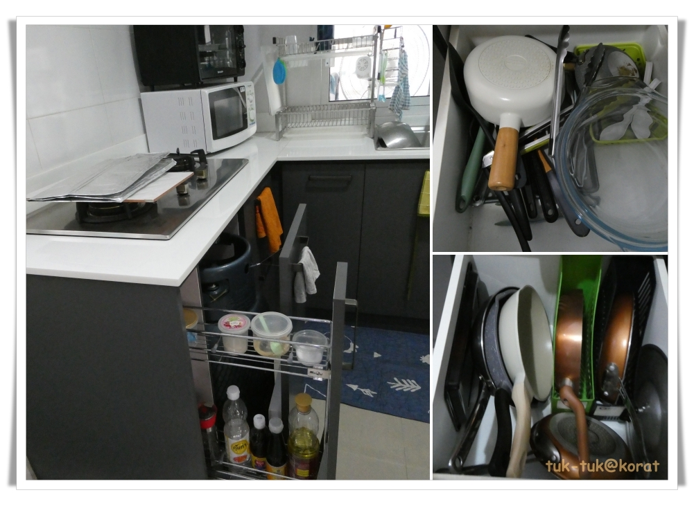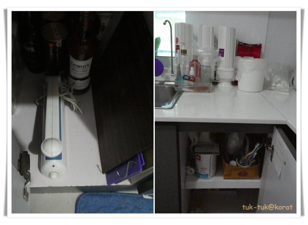 ตู้เคาเตอร์มุมหยิบของยากสุด เสียดายน่าจะติดตะแกรงที่หมุนออกมาตามบานเปิด