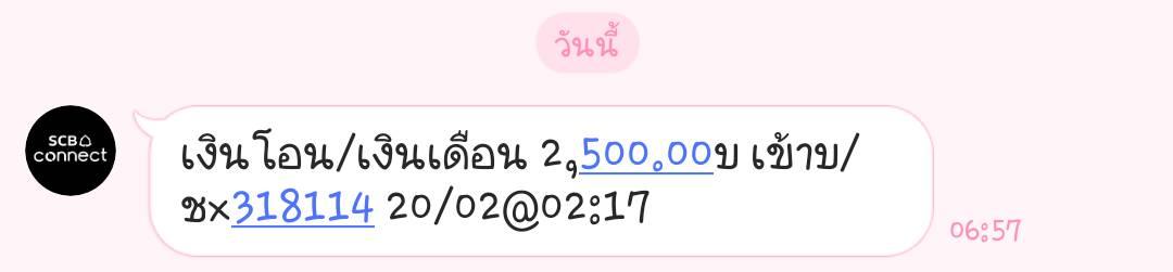 สวัสดีค่ะ ขอสอบถามว่าเมื่อคืน (ตี 2 กว่า) ของวันที่ 20 ก.พ. มีเงินฝาก/เงินเดือน (ไม่รู้ว่าคืออะไร) เข้ามา 2,500 บาท มันเขียนว่าแบบ ATS มันแจ้งรายละเอียดแค่นี้