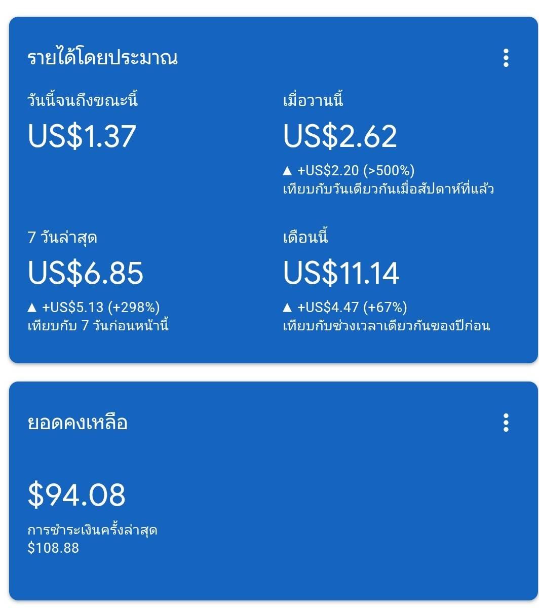 ในที่สุด เงินก้อนแรก Google Adsense จากการเล่นพันทิป ก็มาแล้วค่า ใช้เวลา 2 ปี ค่ะ