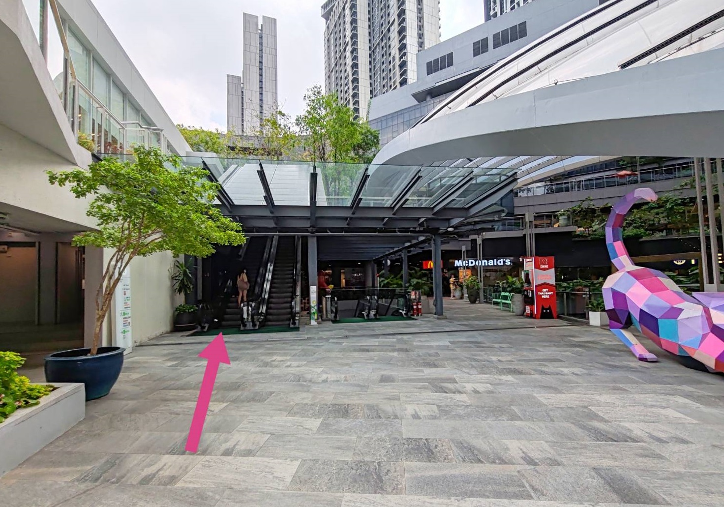 ออกจากบันไดเลื่อนเดินเลี้ยวซ้ายเพื่อเดินผ่านทางเชื่อมไปยังตึก True Digital Park ฝั่ง West