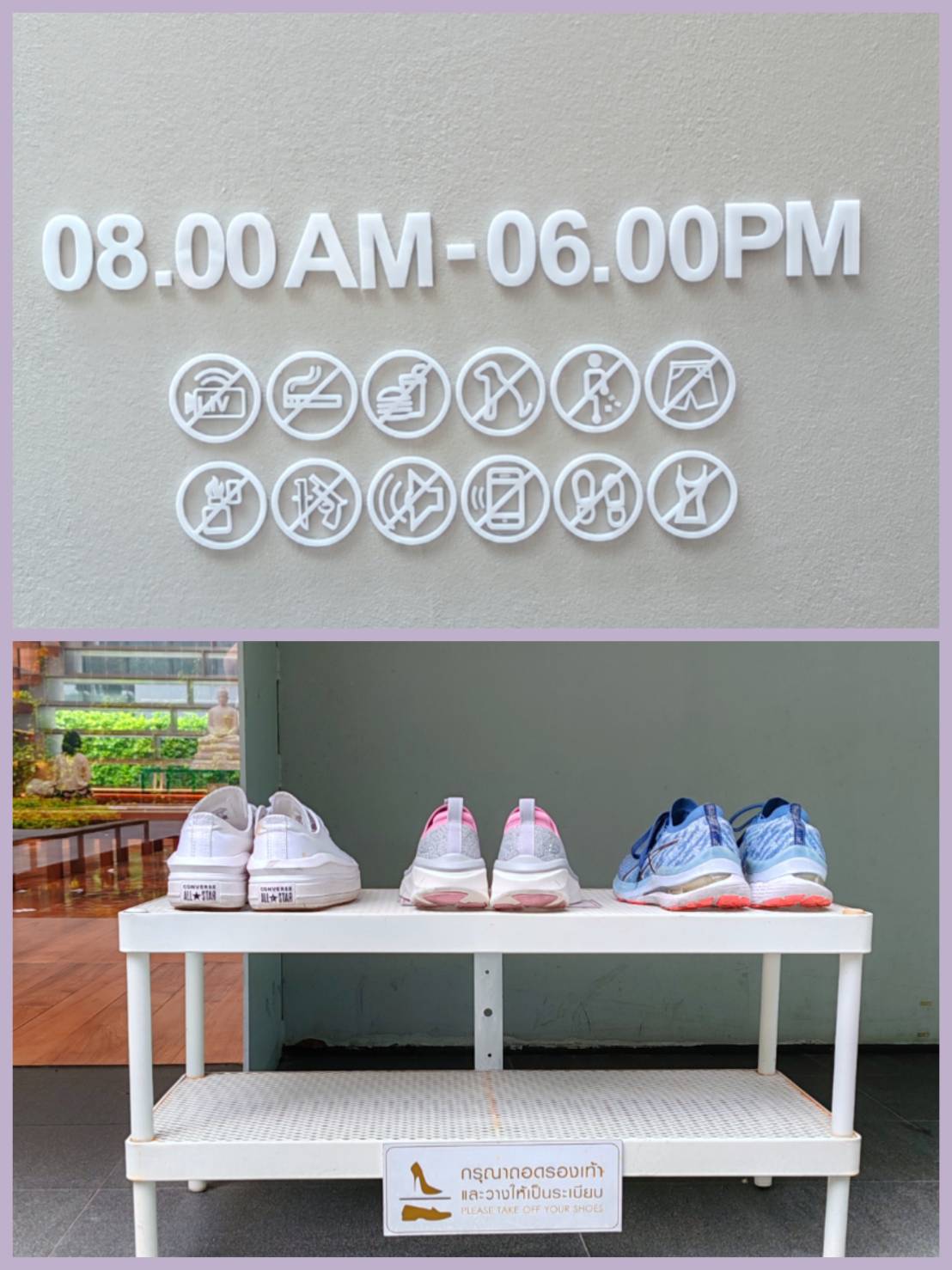 ด้านหน้าวิหารมีที่วางรองเท้า