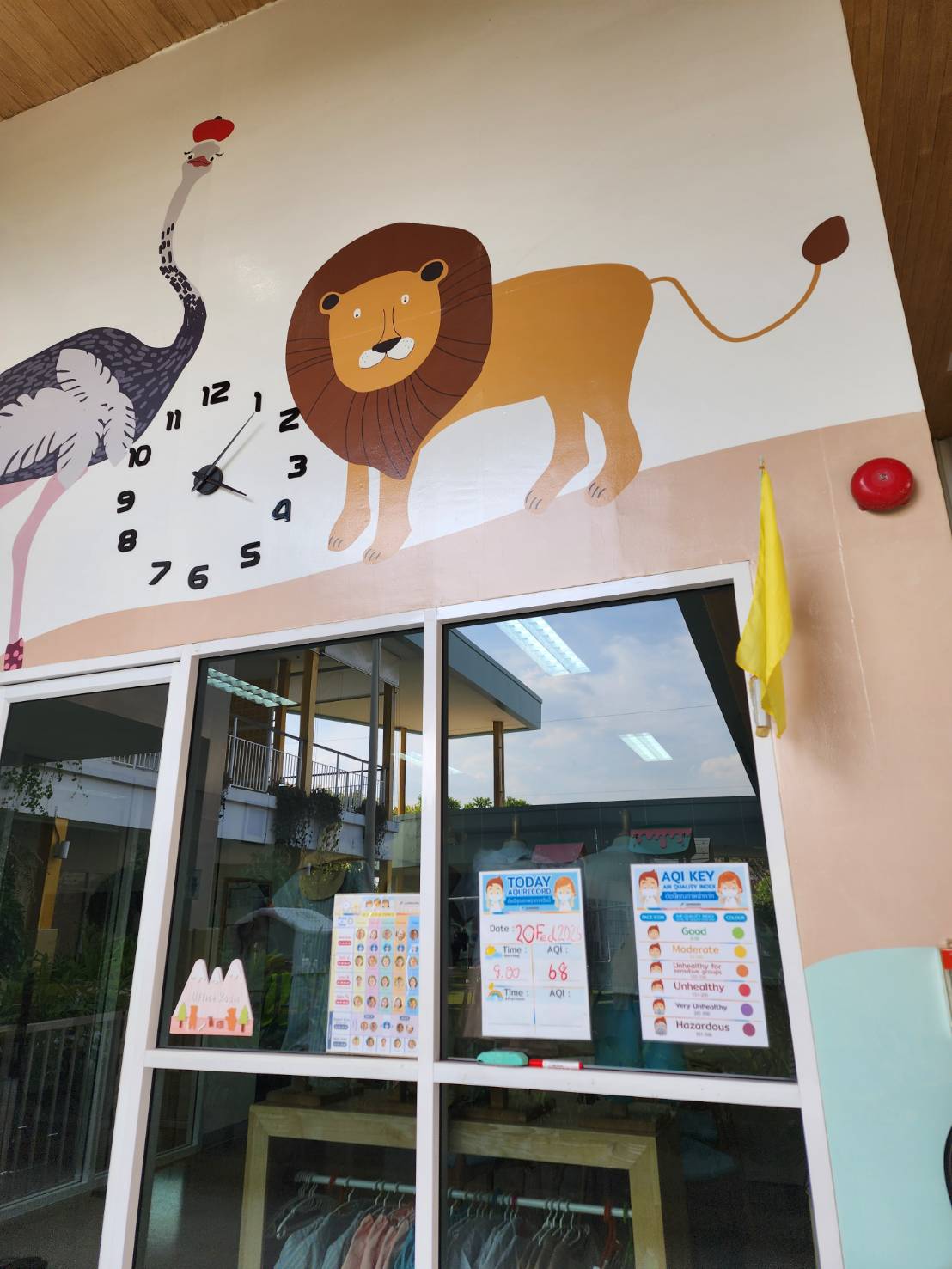 โรงเรียนยังมีธงบอกค่าฝุ่นทุกวัน มีเครื่องกรอง และ station วัดค่าฝุ่น เรื่องสุขภาพถือว่าใส่ใจดีค่ะ