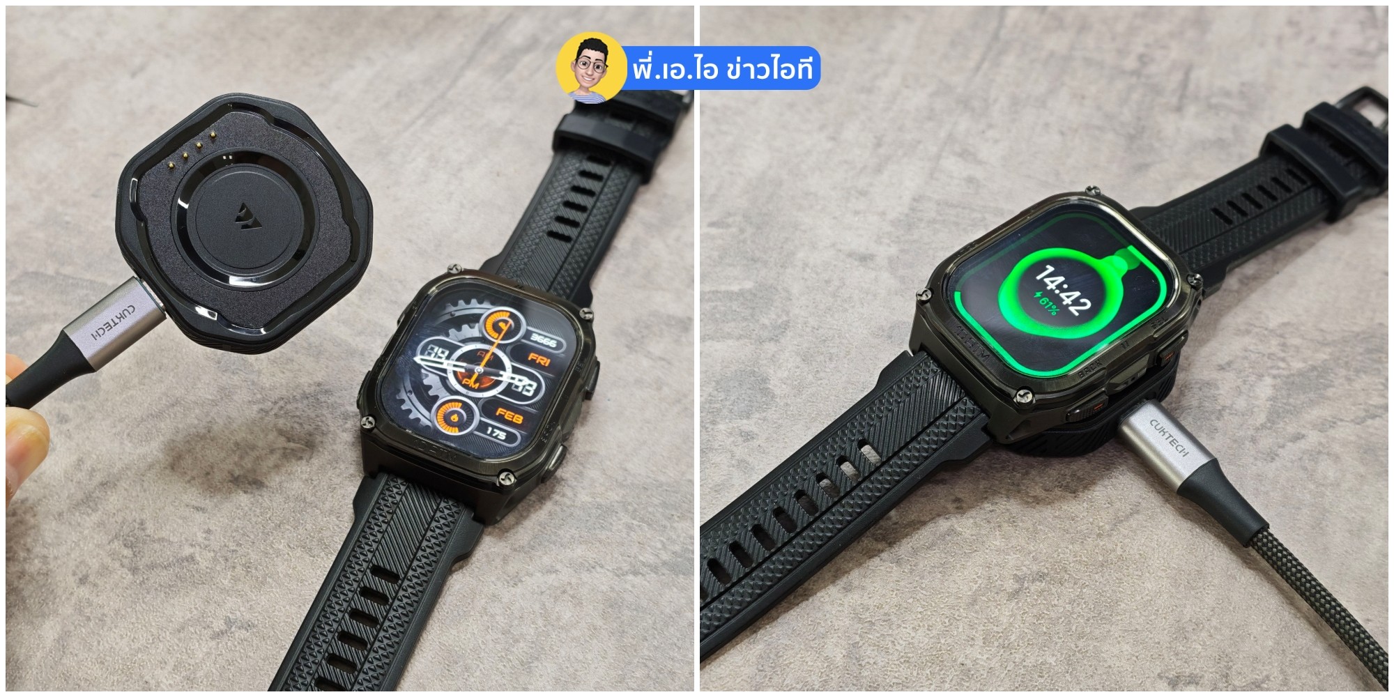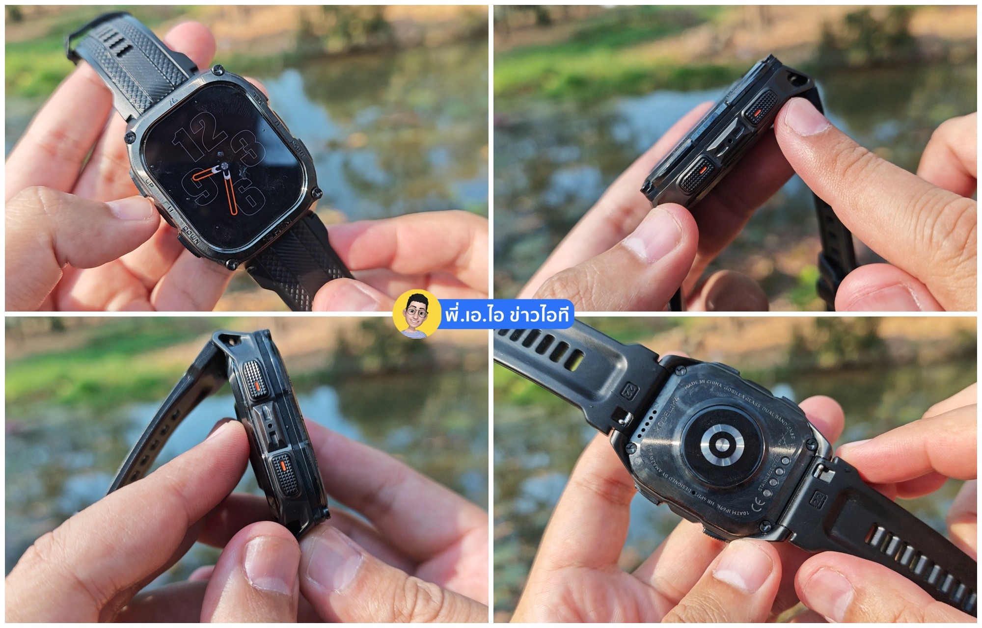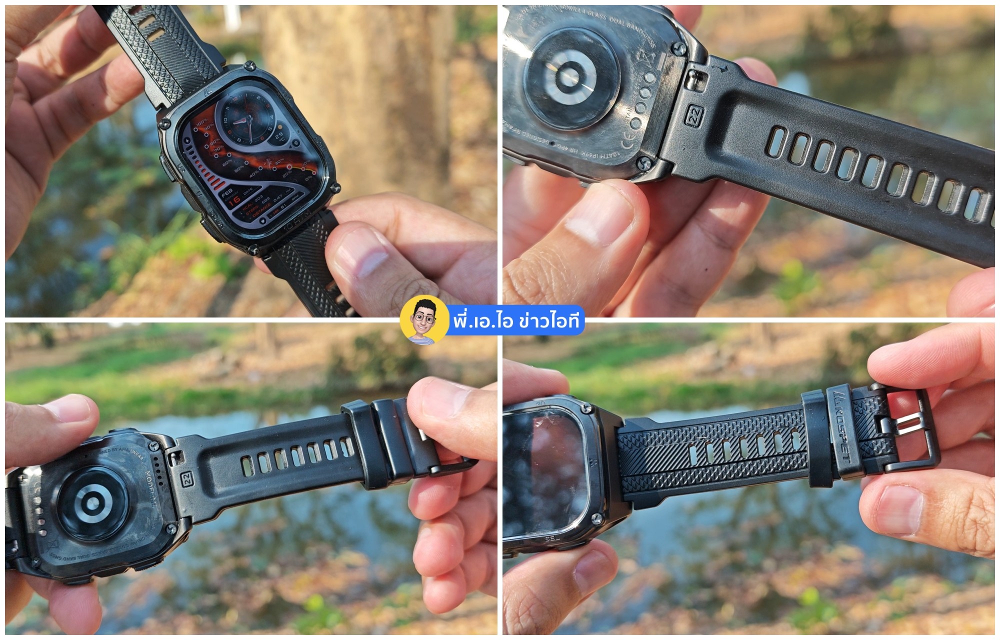 - สำหรับการกันน้ำ ความถึกทน รุ่นนี้ก็ได้รับมาตรฐาน Military Grade คือความแข็งระดับกองทัพ ทั้งเรื่องการกันน้ำในระดับ 10ATM  ถึกทนระดับ IP69K การทนแรงกดดัน ทนแรงกดทับ ใส่ดำน้ำได้ พวกนี้รองรับหมดเลย ถือว่าเป็นสมาร์ทวอชที่ผมไม่ค่อยกังวลเรื่องความแข็งแรงเลย ปกติผมจะค่อนข้างระวังในการใช้มากเพราะส่วนมากสมาร์ทวอทช์จะบอบบาง ไม่อยากให้มีรอย ไม่อยากให้จอแตก แต่ตัวนี้ผมใช้ลุยหลายที่ ชนโต๊ะหลายรอบยังไม่เจอรอยนะ ถือว่ารอดอยู่ครับ