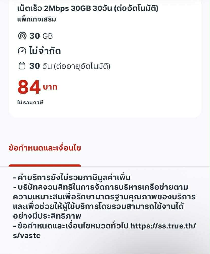 โปรเสริม 200 บาท เน็ตไม่จำกัด เร็ว 15Mbps ปริมาณ 30GB (FUP 384 Kbps) และสิทธิ์โทรฟรีทุกเครือข่ายจำกัดครั้งละ 15 นาที จากนั้นคิดนาทีละ 99 สต. ไม่รวมภาษีมูลค่าเพิ่ม คำถาม #ปริมาณ30GB หม