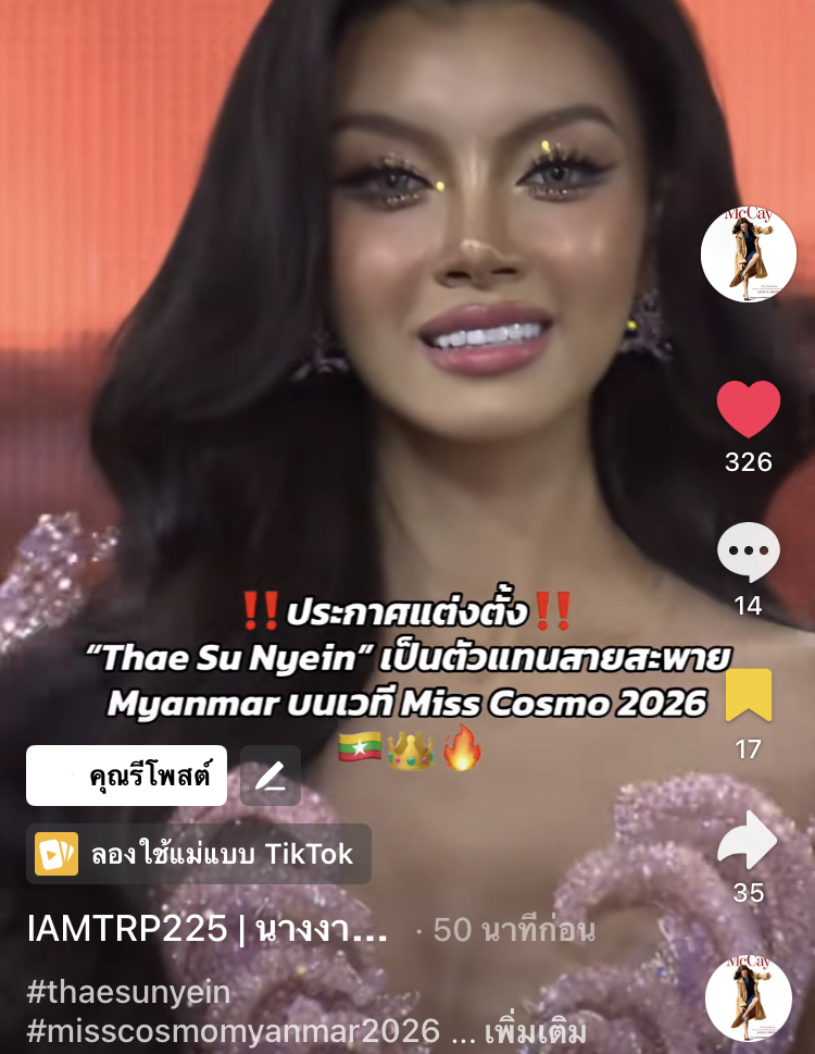 Thae Su Nyein Myanmar🇲🇲 ประกาศแต่งตั้งเป็นMiss Cosmo Myanmar 2026 ด้อมMGIเอาไง?