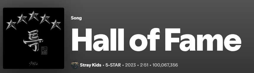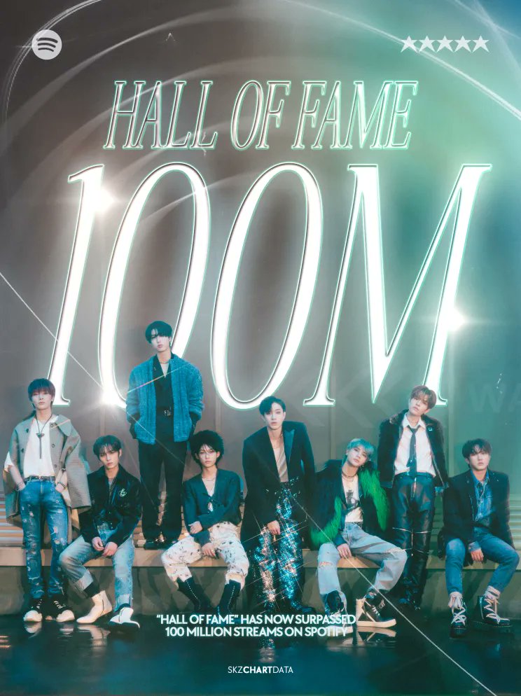🔥 Stray Kids "Hall of Fame" อีกเพลงที่ยอดสตรีมบน Spotify เกิน 100,000,000 (100 M) สถิติเป็นอันดับ1 เจน 4 มากสุด 25 เพลง