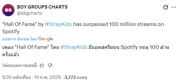 🔥 Stray Kids "Hall of Fame" มียอดสตรีมบน Spotify ทะลุ 100 ล้านครั้งแล้ว