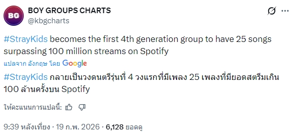🔥 Stray Kids ขยายสถิติเป็นศิลปินเจน 4 ที่มีเพลงมากที่สุดที่มียอดสตรีมเกิน 100 ล้านครั้งบน Spotify