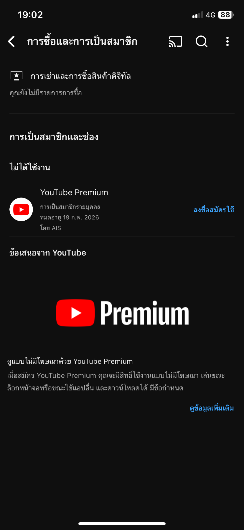 อยู่ดี ๆ Youtube premium ที่สมัครกับ AIS ก็ใช้งานไม่ได้ ใน App Youtube แจ้งว่าหมดอายุ