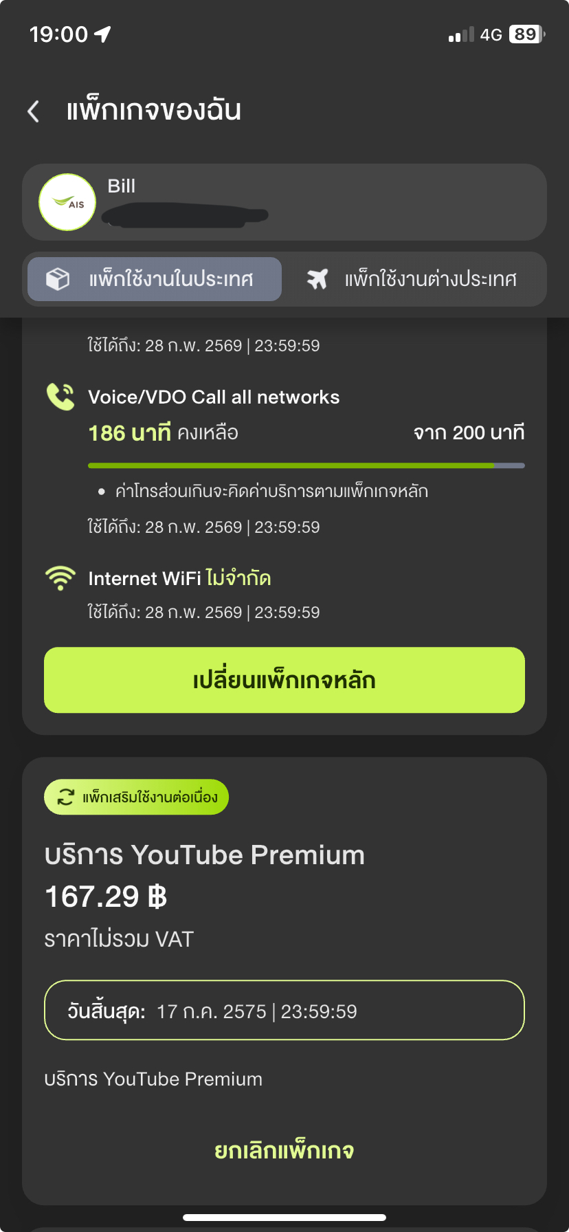 คือพึ่งเคยสมัครแพ็คเก็จนี้ สมัครตอนแรกใช้ได้ปกติ พอเดือนต่อมา ก็เติมเงินเข้า ais ก็หักไปแล้ว 199฿ ยูทูปพรีเมี่ยม +เน็ต 5gb โทรฟรี 30น แต่เข้ายูทูปอีกที พรีเมี่ยมหายและขึ้นว่าหมดอายุแล้ว ติดต่อเจ้าหน้า