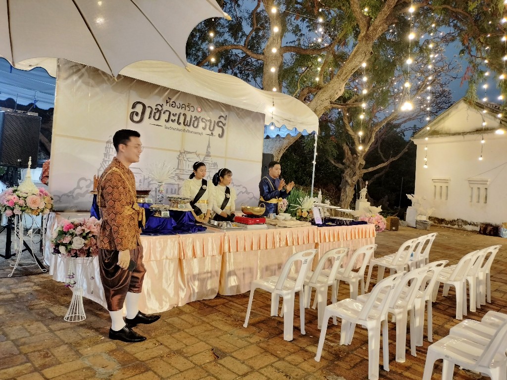 เวทีสาธิตขนมไทย เหงาหน่อย แต่เดี๋ยวขบวนแห่เปิดงานเสร็จก็จะมีคนมาชมค่ะ