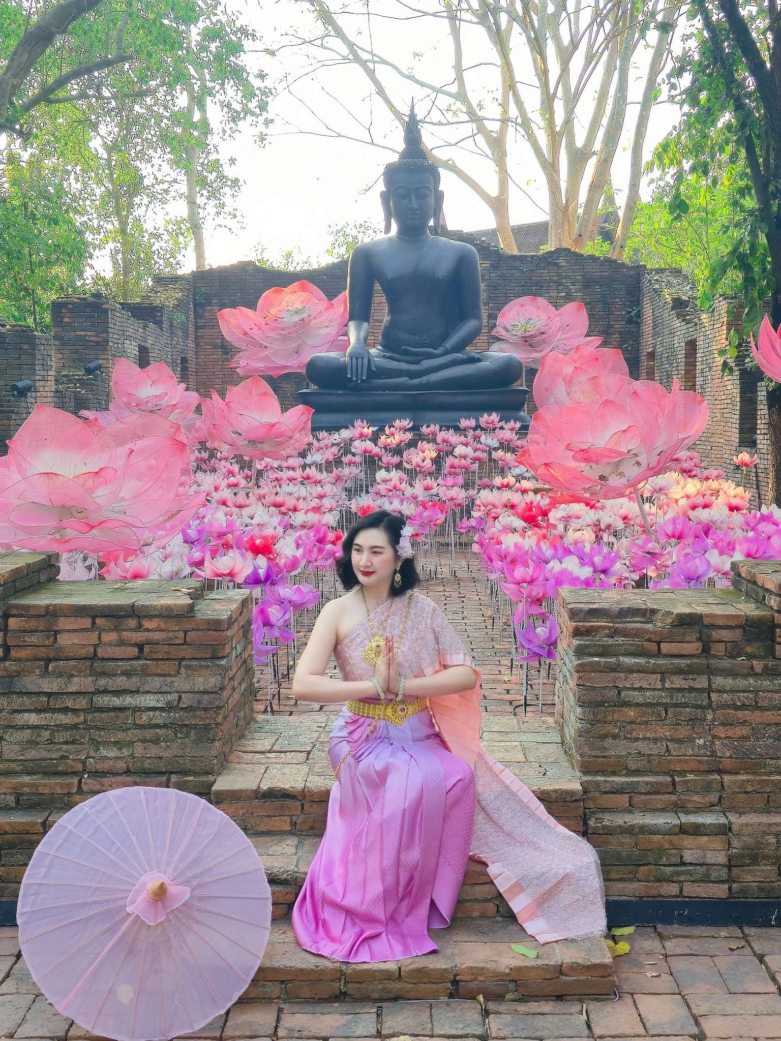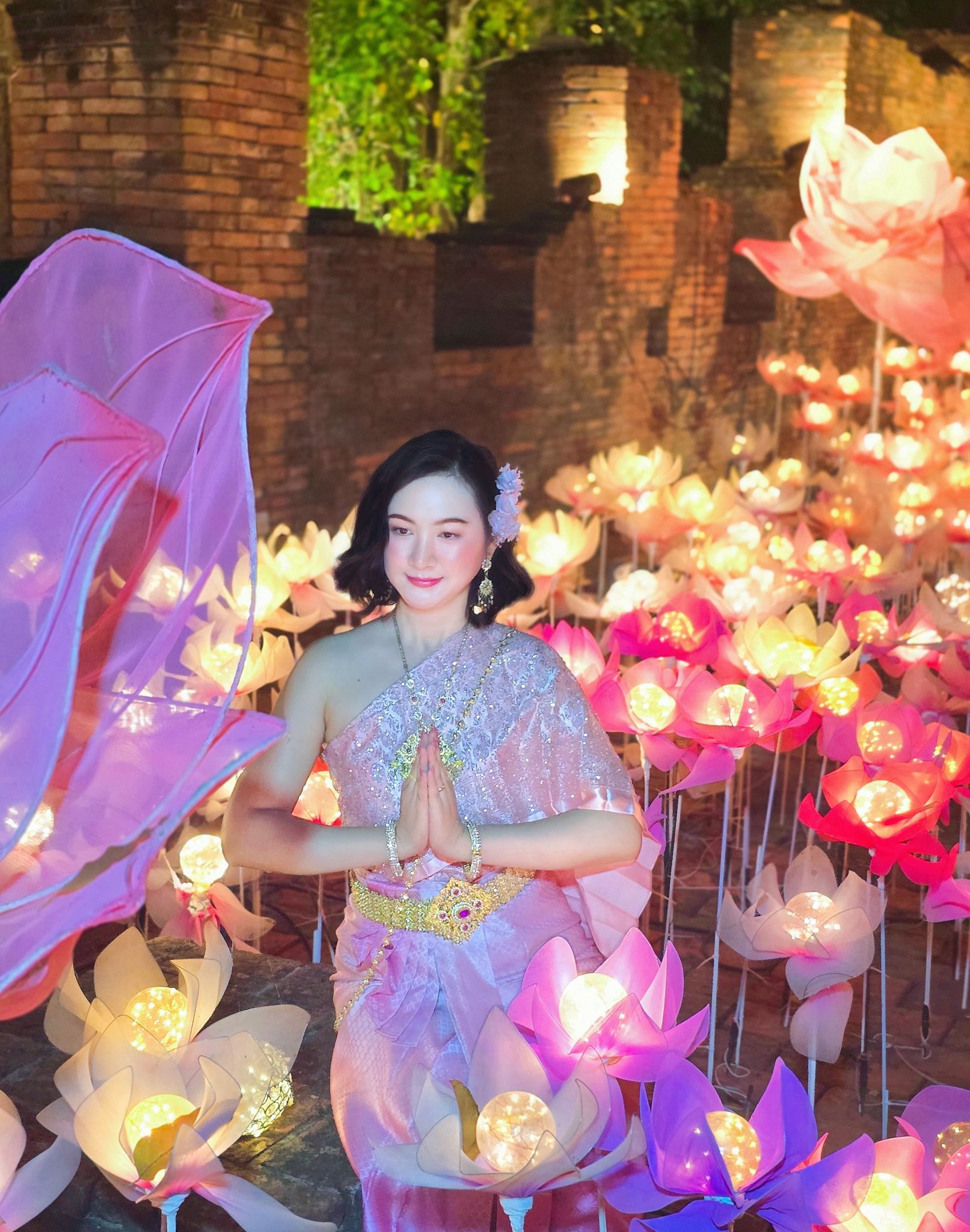 💃มนุษย์เมียอยากตามเทรน แต่งชุดไทยสวยๆ ถ่ายรูปกับสถานที่สวยๆ แสงไฟสีสันสวยงาม