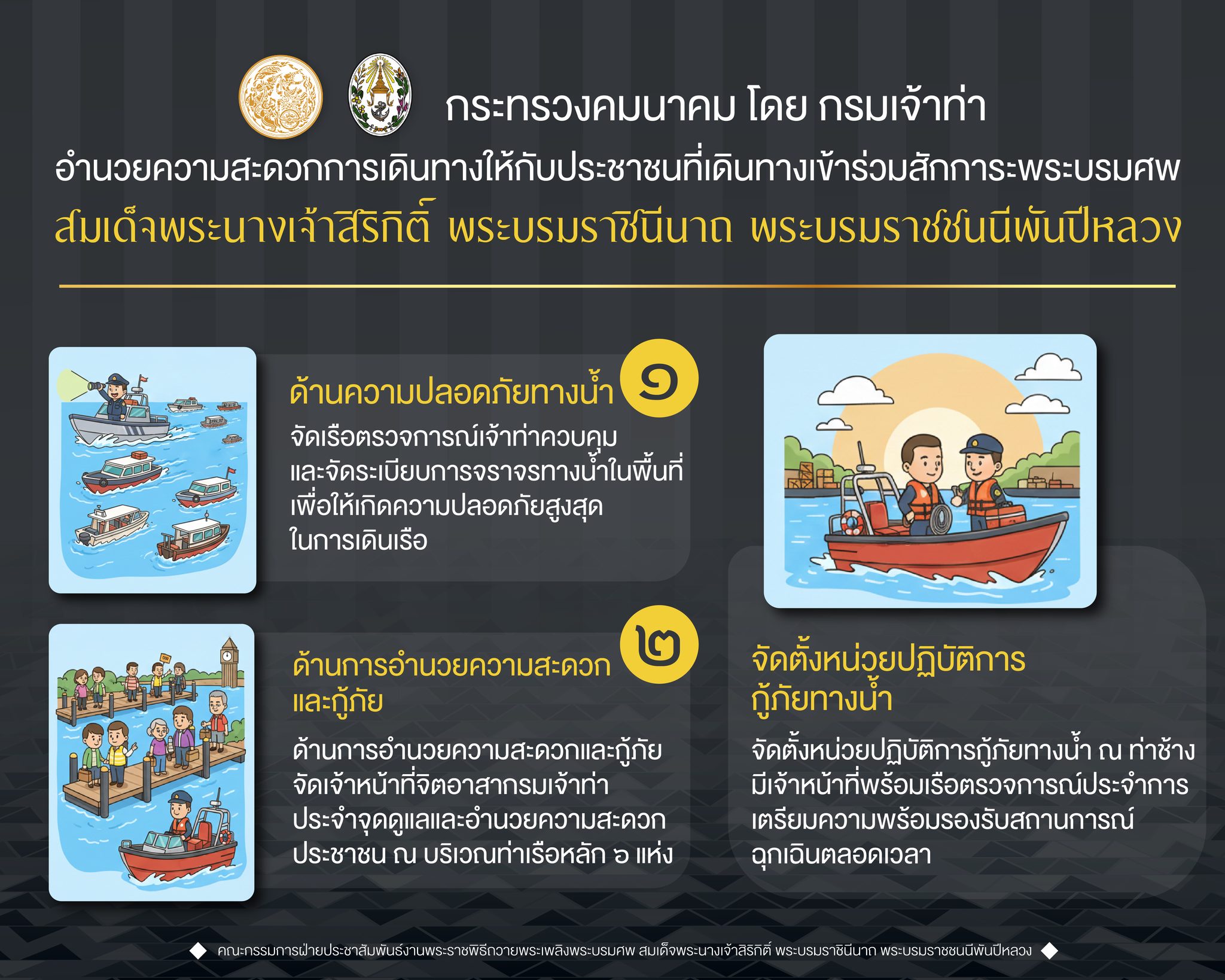• โปรดแต่งกายสุภาพไว้ทุกข์ สุภาพบุรุษงดสวมกางเกงยีนส์ สุภาพสตรีสวมกระโปรงหรือผ้านุ่งเท่านั้น