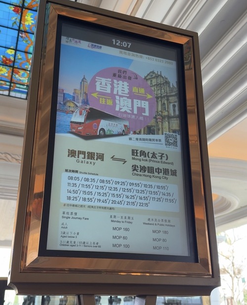 ซึ่งเส้นทางนี้ จะเริ่มจาก 4 คาสิโน เวเนเชี่ยน MGM แกรนด์ลิสบัวและ Galaxy Macau ไปส่งที่ Prince Edward หรือจุดอื่นใกล้ๆย่านมงก๊ก ครับ