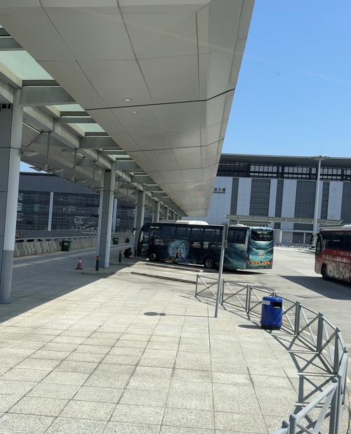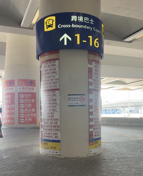 เดินตรงออกไปขึ้นรถช่อง Cross-boundary Coach ช่อง 3 จะมีคนตรวจตั๋วและถามว่าเราจะลงที่ไหน