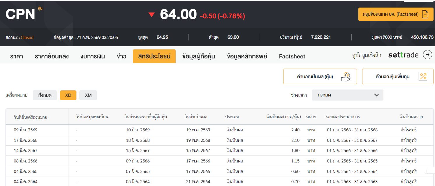 แนวรับที่น่าจะเป็นไปได้ของ PTTEP ในวันขึ้น XD (23/2)