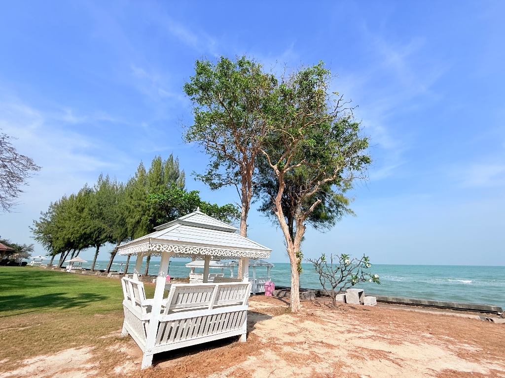 บรรยากาศร้าน อยู่ในที่พักสวัสดิการทหารอากาศบ่อฝ้าย ใกล้สนามบินหัวหิน ขับเข้าไปชายทะเลเลย จากเพชรเกษม 2 กม