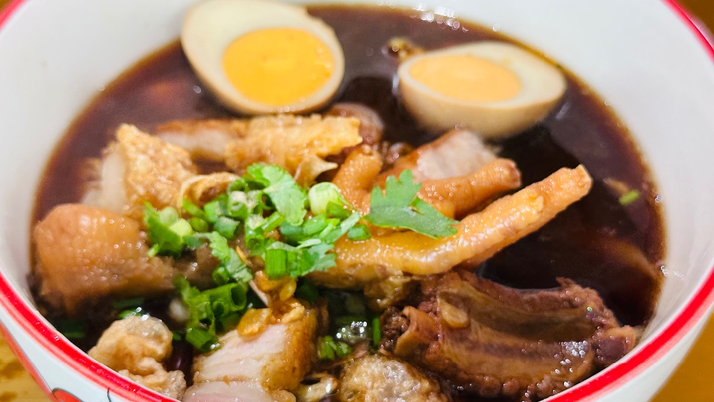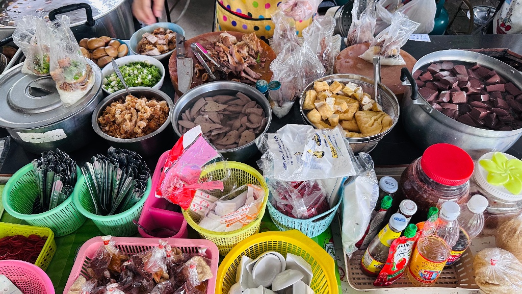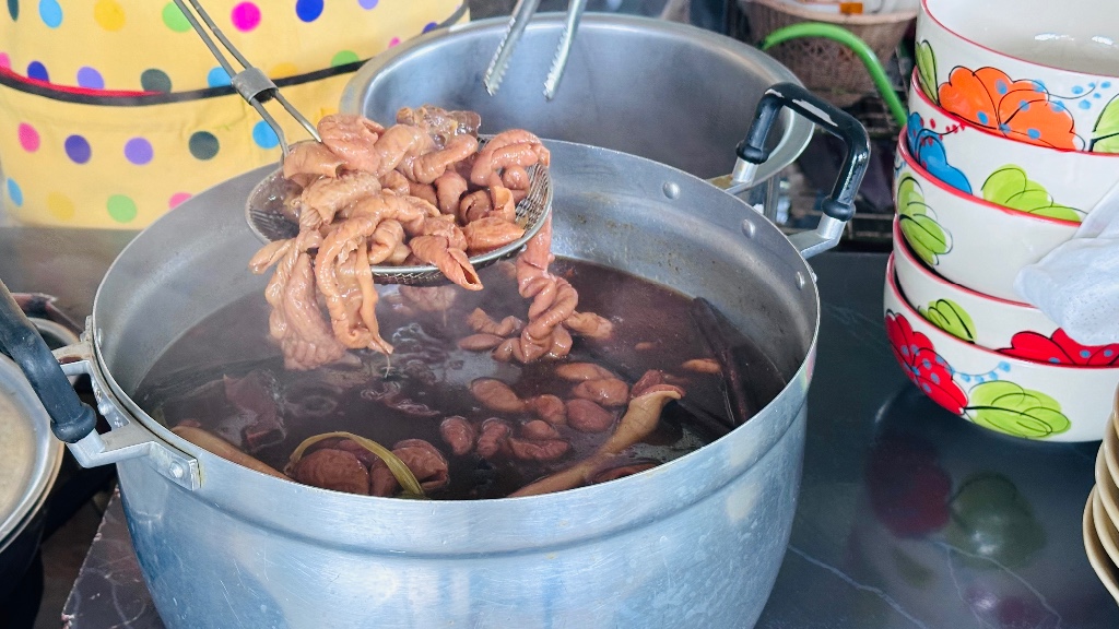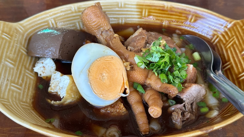 เมนูเด่นๆ ก็คือก๋วยจั๊บรสชาติเข้มข้น เครื่องครบทั้งหมูกรอบที่กรอบจริงๆ ซี่โครงตุ๋นเปื่อยนุ่ม ตีนไก่ ใส้หมู เครื่องในที่เคี่ยวตุ๋นมาได้ที่ และให้ปริมาณค่อนข้างเยอะ