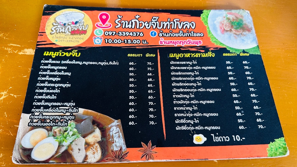 นั่นก็คือร้านก๋วยจั๊บท่าโขลง ร้านอยู่ริมถนน 3454 เส้นเลียบคลองชลประทานโพธิ์ทอง-วิเศษไชยชาญ ปักหมุด GPS ไปหาง่าย จอดรถได้ทั้งหน้าร้าน ที่จอดรถในร้าน ร้านกว้างขวางนั่งสบาย