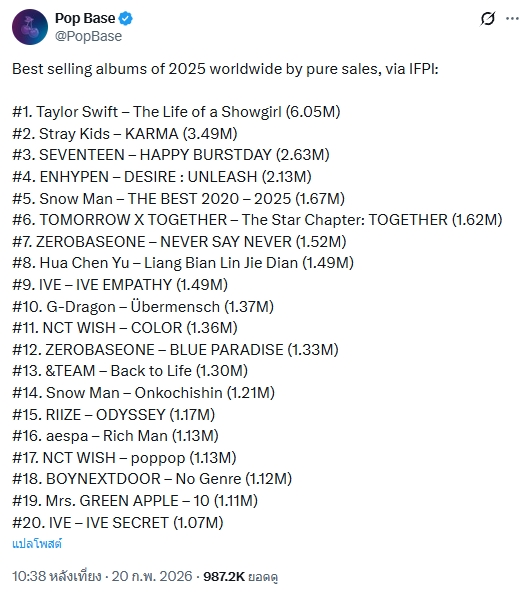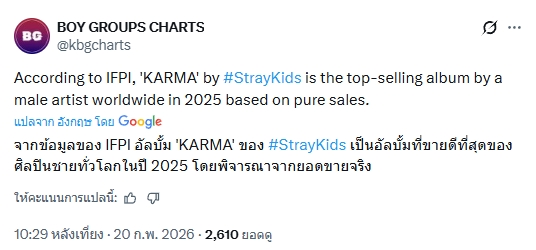 🔥 Stray Kids "KARMA" อัลบั้มที่ยิ่งใหญ่ที่สุดแห่งปี 2025 จาก IFPI Global Album Sales