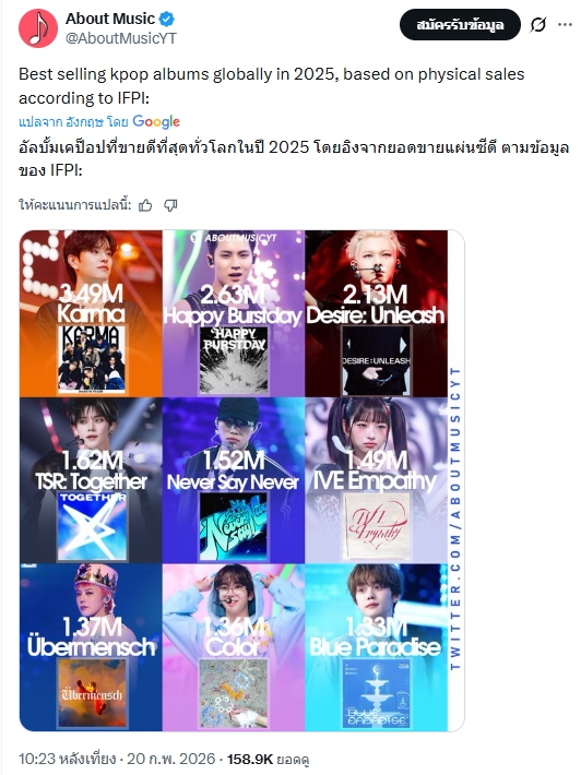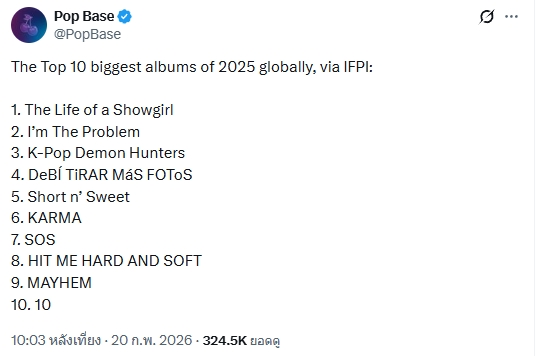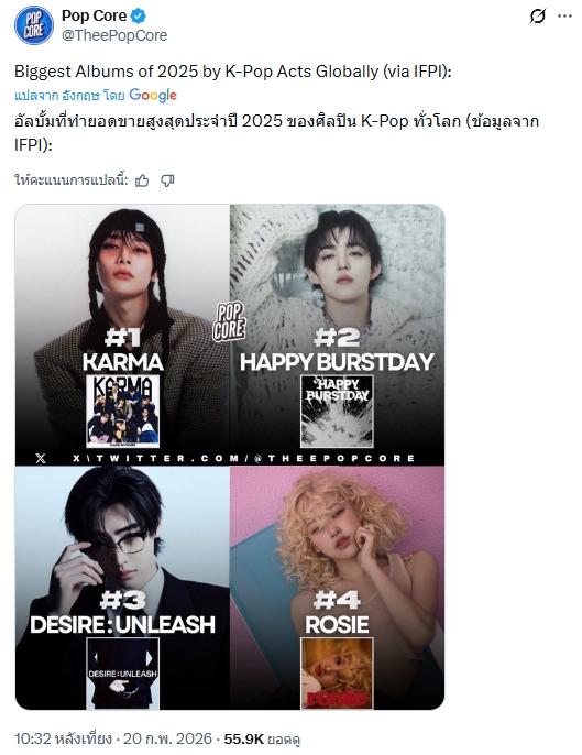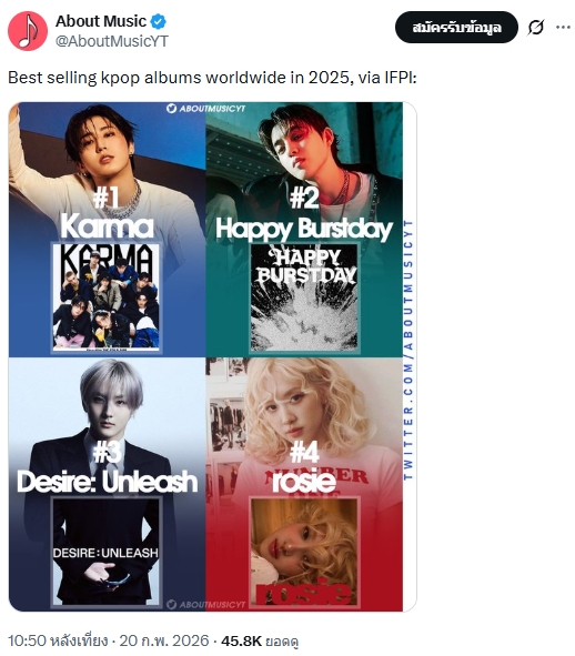 — "KARMA" อัลบั้มขายดีที่สุดอันดับ 2 ของโลก
