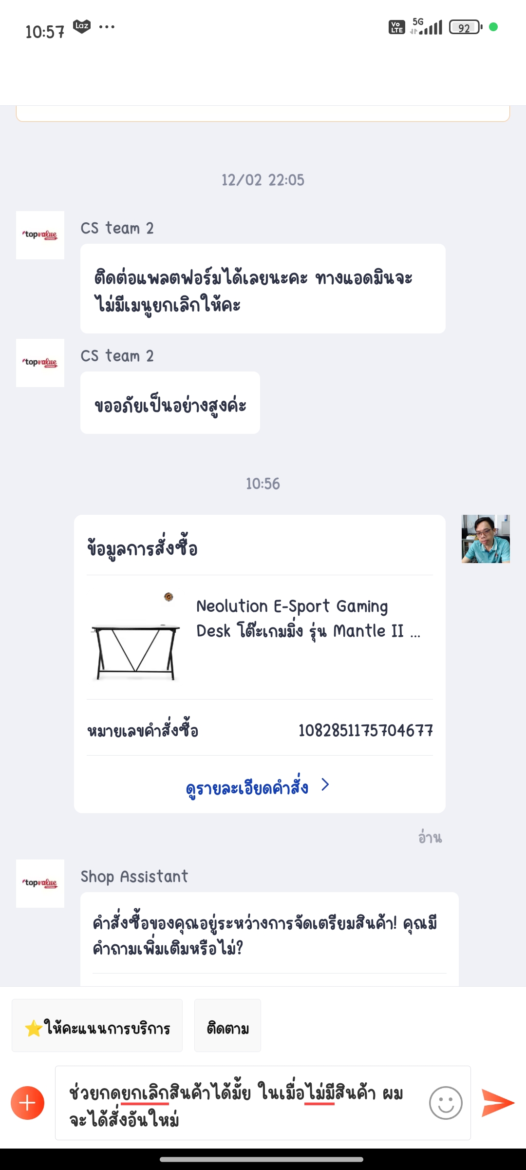 ยกเลิกสินค้าไม่ได้ ร้านก็ติดต่อแล้วไม่สนใจ พนง.ก็มีแจ้งว่ายกเลิกไม่ได้...