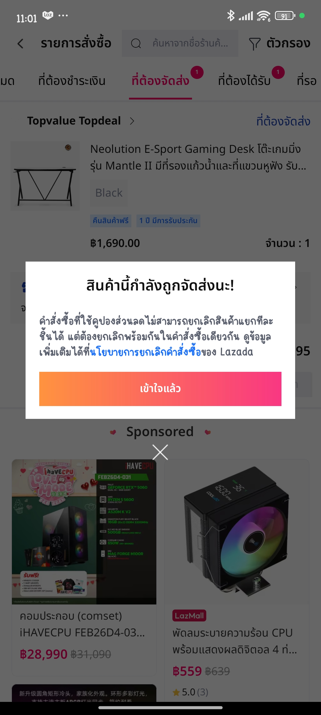 ยกเลิกสินค้า lazada ไม่ได้ เพราะใช้ paylater เนื่องจากร้านแจ้งมาว่าไม่มีของ ยกเลิกไม่ได้ บอกให้แจ้งไปทางแอพแอพ แต่แอพมันมีแต่บอท ตอบไม่ตรงคำถาม ทำยังไงดี สั้งพรัอมกันหลายอย่าง ของมาส่งทุกอย่างหมดแล้วเหลืออันเดียว สั่งตั้งแค่ 10 ก.พ. 69 จะต้องทำยังไงดี