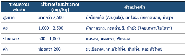 หมายเหตุ: ผักไฮโดรโปนิกส์ที่จัดการน้ำไม่ดี อาจมีค่าสูงถึง 4,000 - 5,000 mg/kg ได้ในบางกรณีครับ