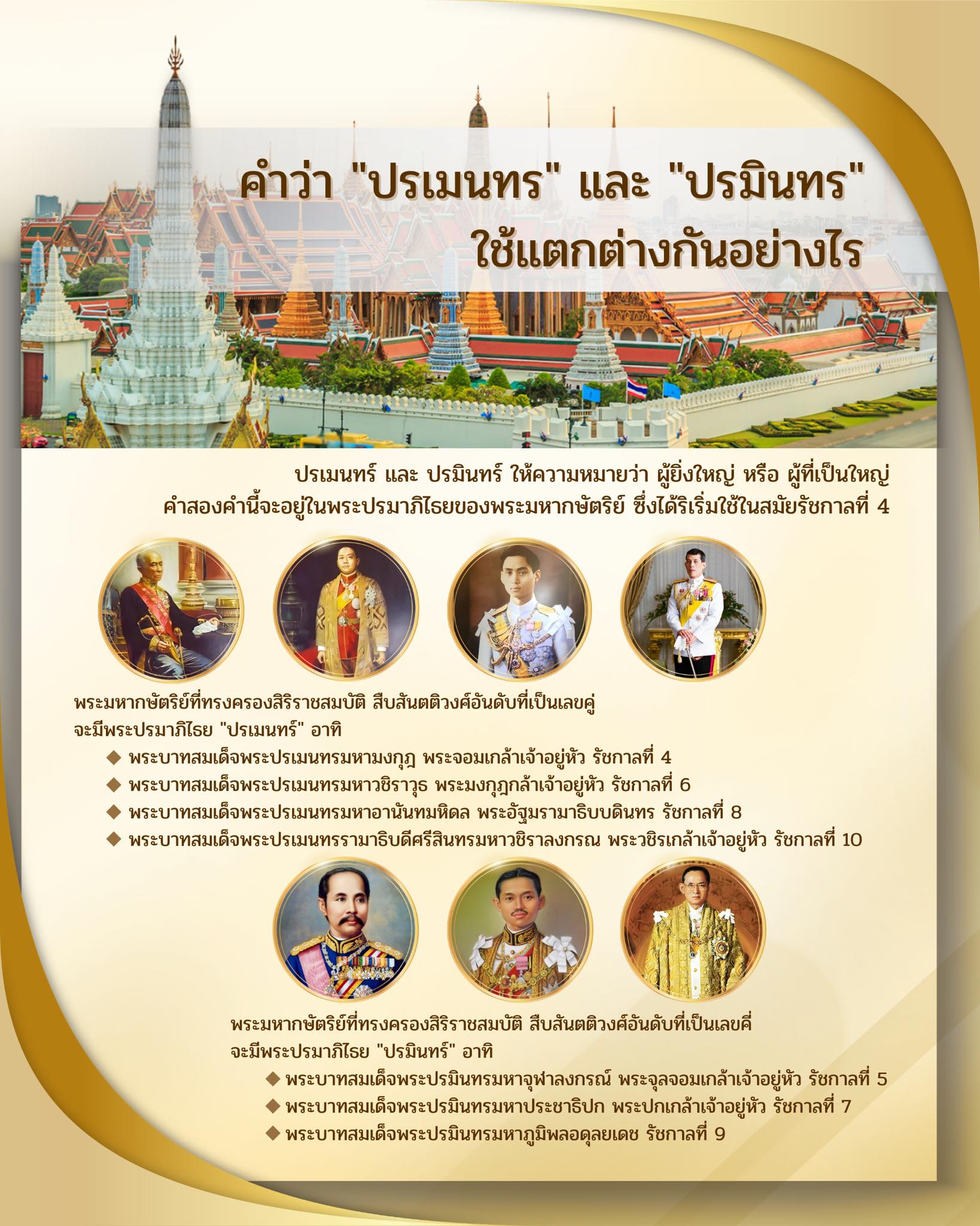 💭คำว่า "ปรเมนทร" และ "ปรมินทร" คำสองคำนี้จะอยู่ในพระปรมาภิไธยของพระมหากษัตริย์ ใช้แตกต่างกันอย่างไร❓