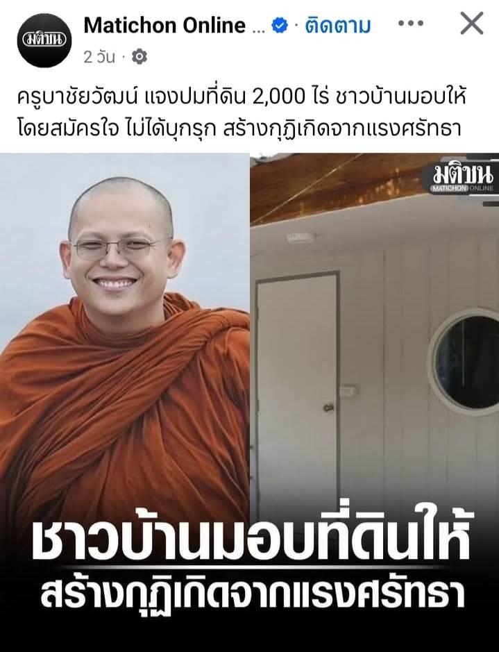 “ครูบาชัยวัฒน์” ป่วยกะทันหัน วัดป่าชนะใจประกาศจุดยืน พร้อมให้ตรวจสอบทุกกรณี https://www.thairath.co.th/news/society/2915635