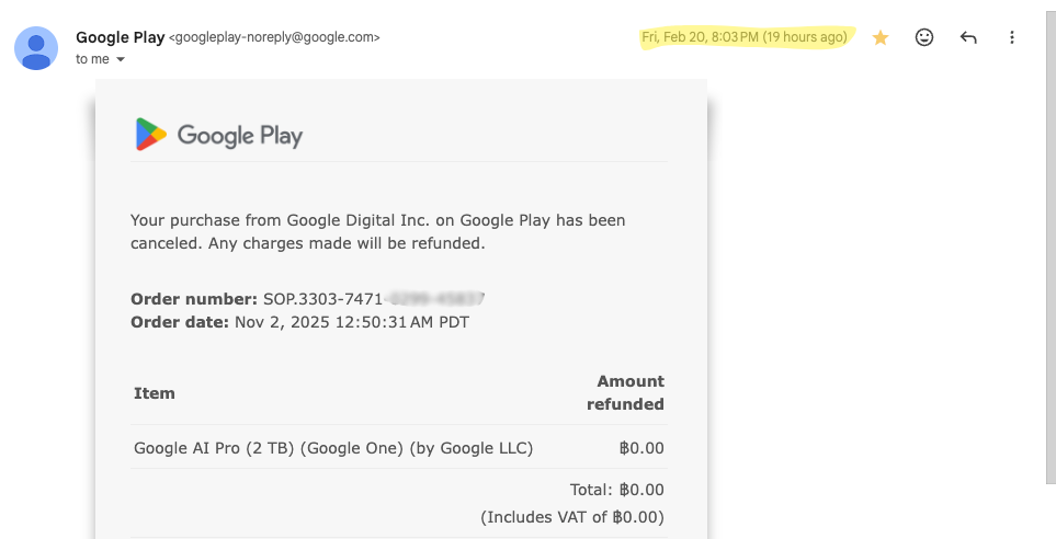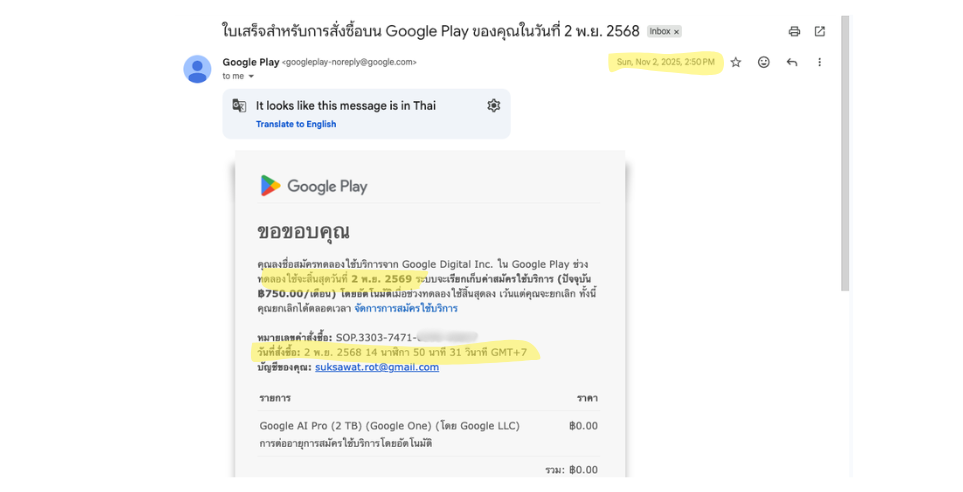 ใครสมัคร Gemini Pro ฟรี 1 ปี ของโครงการ ThaiMooc แล้วตอนนี้โดน Google Cancel การสั่งซื้อเหมือนผมบ้าง?