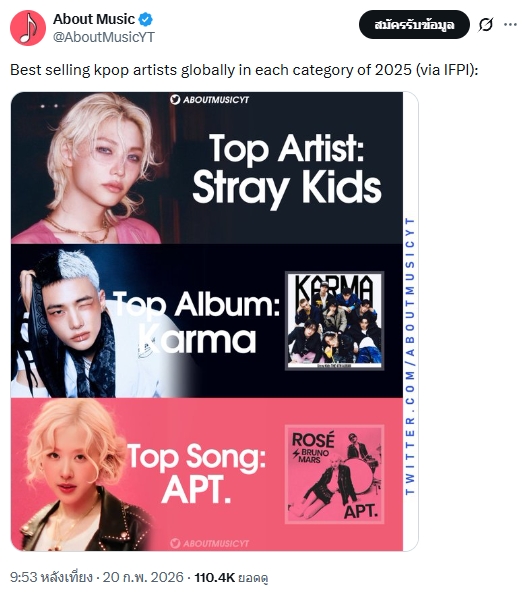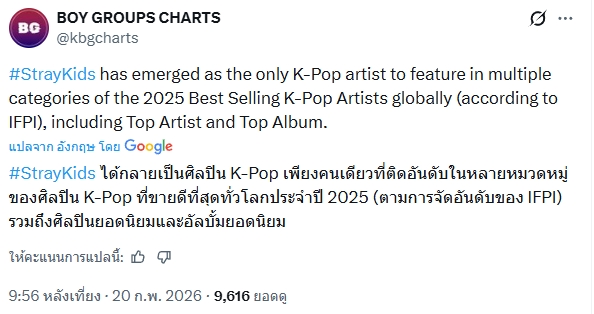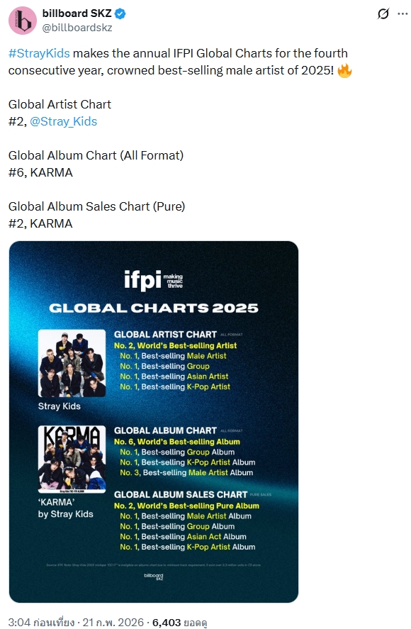 🔥 Stray Kids เป็นศิลปิน K-Pop เดียวที่ติดอันดับในหลายหมวดหมู่ของศิลปิน K-Pop ที่ขายดีที่สุดทั่วโลกประจำปี 2025 จาก IFPI