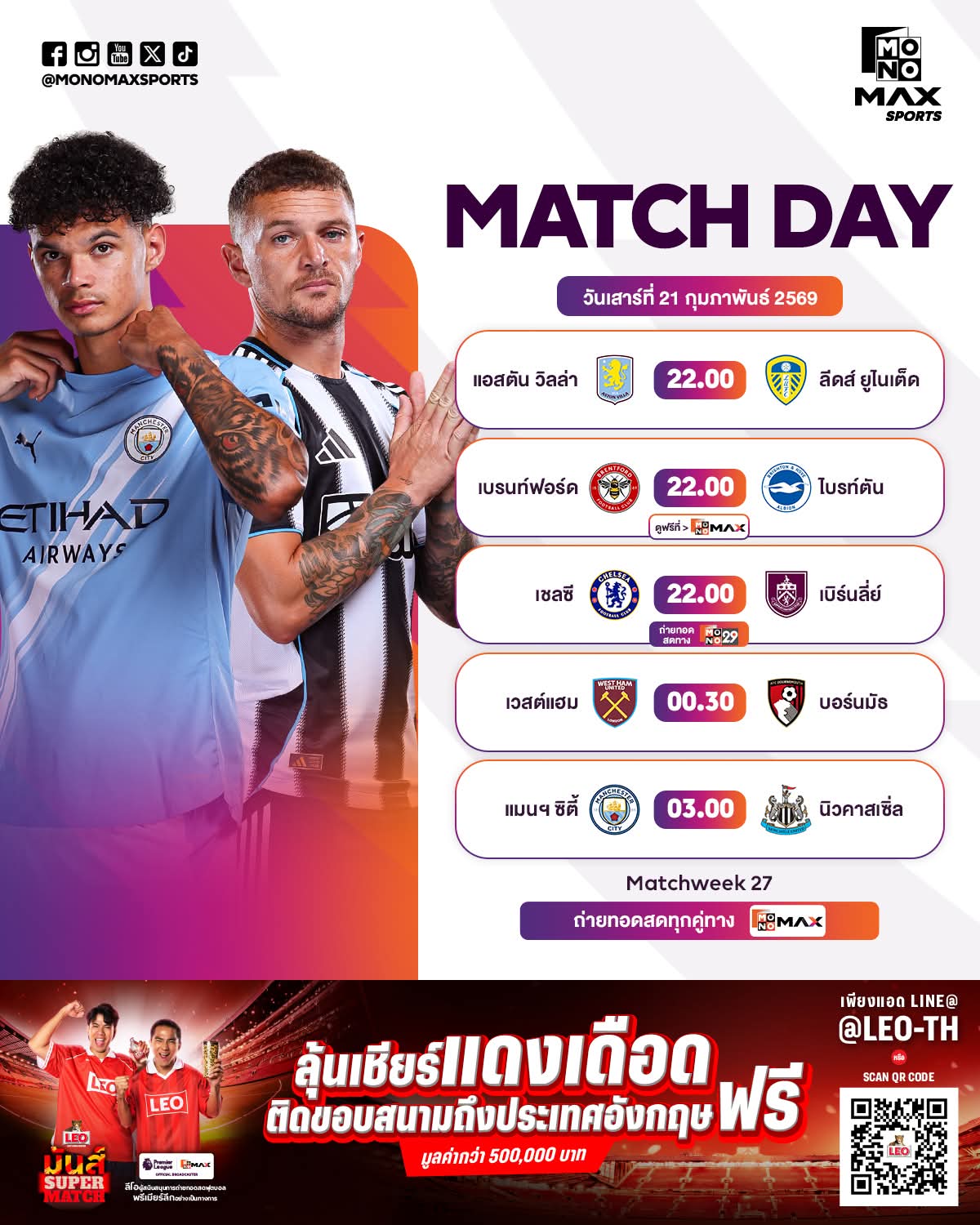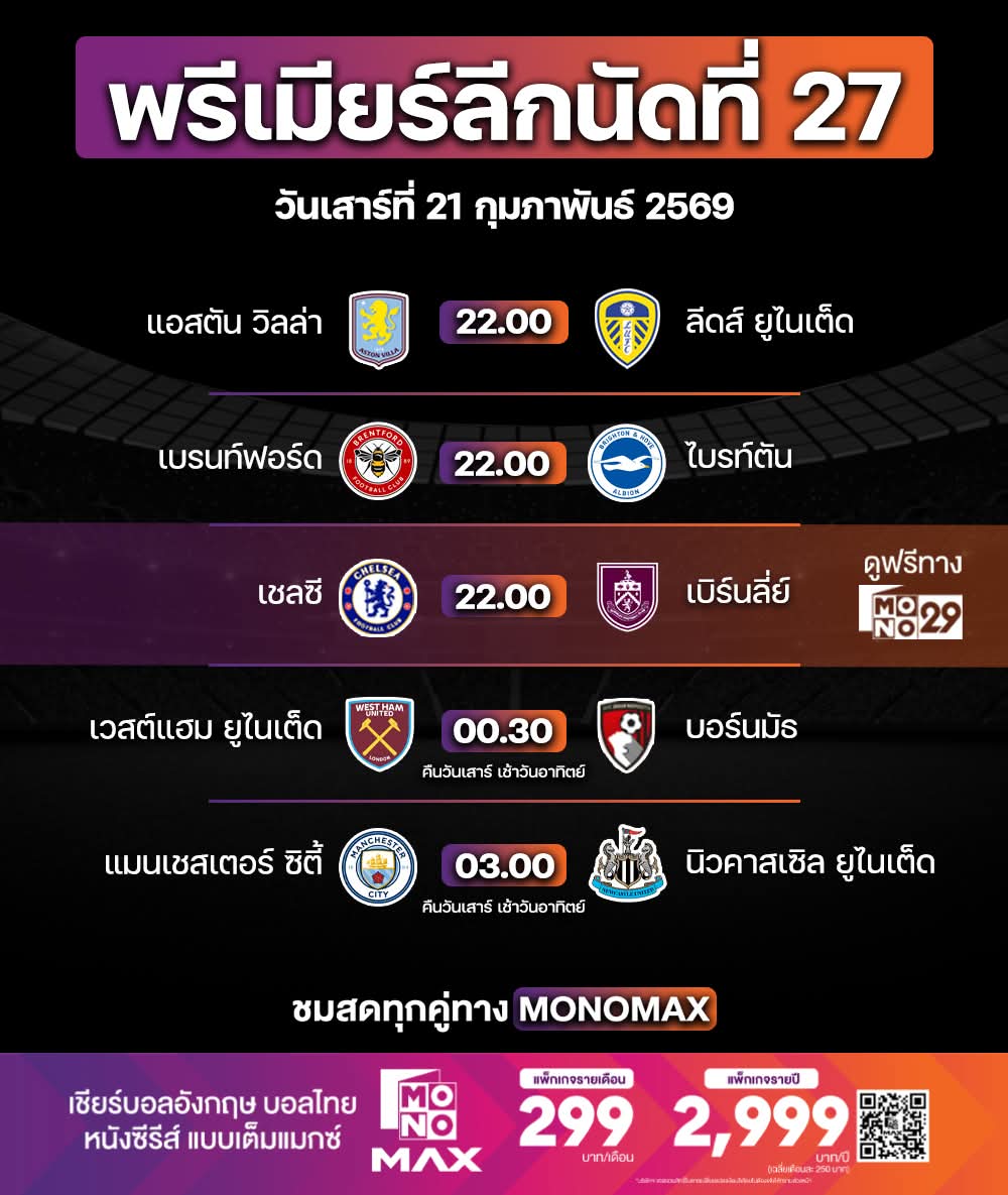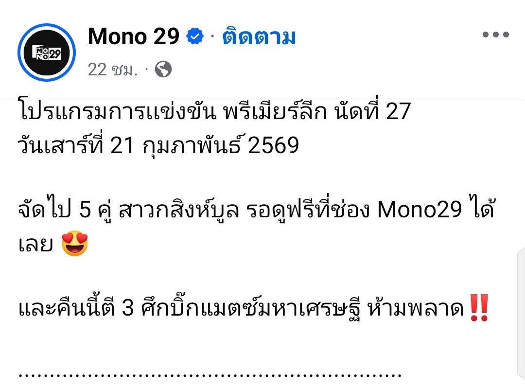 ⚽🏴 MATCH DAY 🗓️ วันเสาร์ ที่ 21 กุมภาพันธ์ 2569 📺#Mono29 #Monomax 🔴