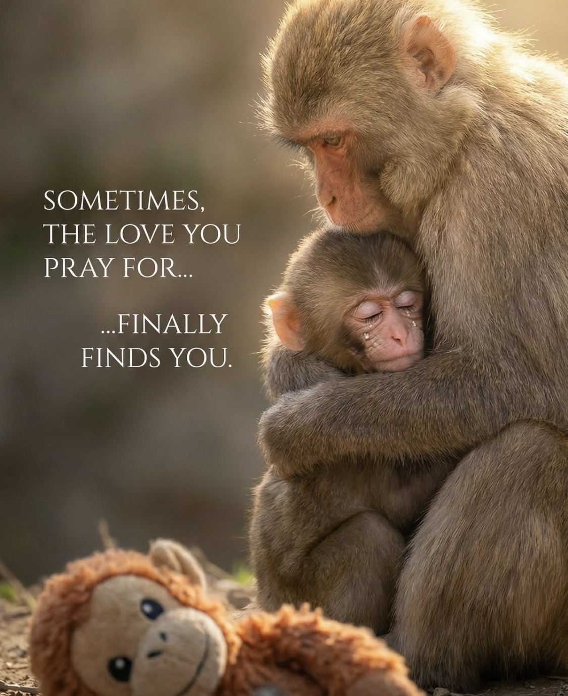 ภาพของลูกลิงที่กอดตุ๊กตาแน่น ๆ มันบีบหัวใจมาก เพราะตุ๊กตาไม่เคยกอดตอบกลับ