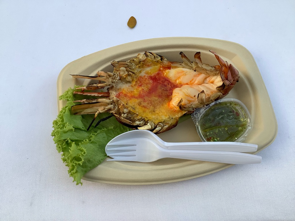 กุ้งตัวโต เนื้อหวานเด้ง เผามาดีมาก น้ำจิ้มกลมกล่อมกำลังดี ตอนที่ผมไปเข้าคิวใช้เวลารอไปยี่สิบนาที แต่หลังจากนั้นเห็นคิวยาวมากๆ น่าจะเกินยี่สิบนาทีล่ะ