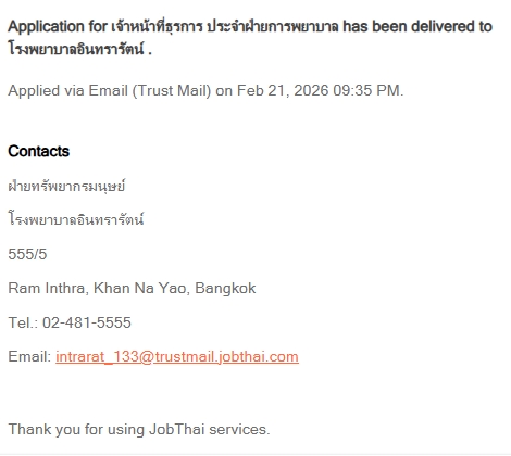 สวัสดีค่ะ พอดีได้ยื่นสมัครงานผ่าน JobThai ของบริษัทแห่งหนึ่งใกล้บ้าน แล้วมีอีเมลตอบกลับมาจาบริษัทที่ยื่นสมัครไว้ ส่วนตัวตอนแรกรู้สึกอึ้ง ประมาณตกใจในการตอบกลับอีเมล แล้วอ่านแล้วอ่านอีก ก็ไม่ค่อยเข้าใจ