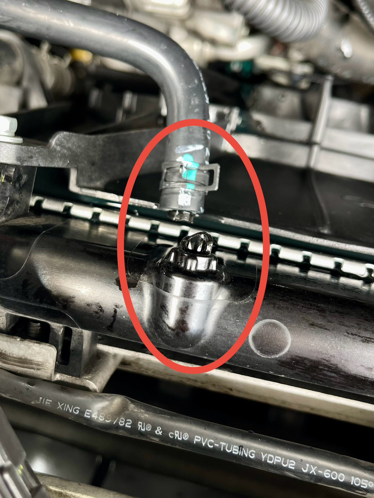 - สาเหตุ ผมเดาว่า .. ขับเร็ว ลากรอบ ออกตัวกระชาก ทั้งหมดนี้ ทำให้แรงดันในระบบสูงขึ้น เลยดึง และ ดัน ท่อให้ถอยออกมา .. ซึ่ง ปัญหา มันมาจากการออกแบบ ไม่ได้เผื่อให้รองรับ (ลดต้นทุนเหมือนเดิม) ผลเลยเป็นแบบนี้