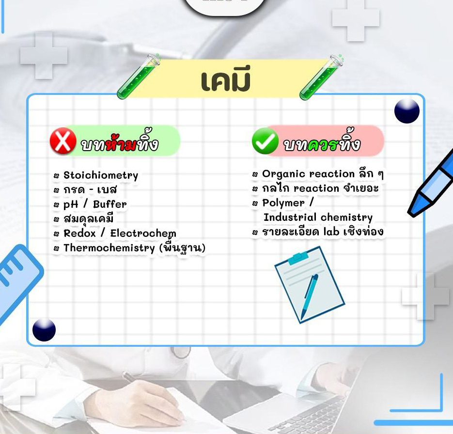 สรุป "ข้อสอบเคมี" สุดหิน! พิชิตสนามสอบตรงแพทย์รังสิต (Rangsit Med) ให้ได้คะแนนพุ่ง น้อง ๆ ว่าที่นักศึกษาแพทย์/ผู้ปกครองที่กำลังเตรียมตัวอยู่ ฟังทางนี้ค่ะ! การสอบเข้าคณะแพทยศาสตร์ ไม่ใช่แค่