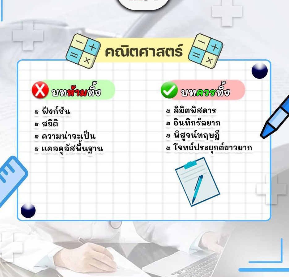 น้อง ๆ คนไหนกำลังเตรียมสอบเข้าแพทย์รังสิตอยู่บ้างยกมือขึ้น ถ้าฝันอยากเป็นหมอจริง ๆ สิ่งสำคัญไม่ใช่แค่อ่านหนังสือหนัก ๆ แต่ต้อง อ่านให้ถูกจุด และ รู้ว่าแนวข้อสอบออกอะไรบ่อย วันนี้พี่สรุปให้แล้วว่าแต่ละ