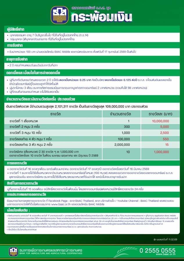 รายละเอียด เงื่อนไขการฝากสลากออมทรัพย์ ธกส.ชุดกระพ้อมเงิน