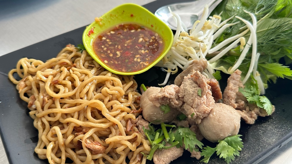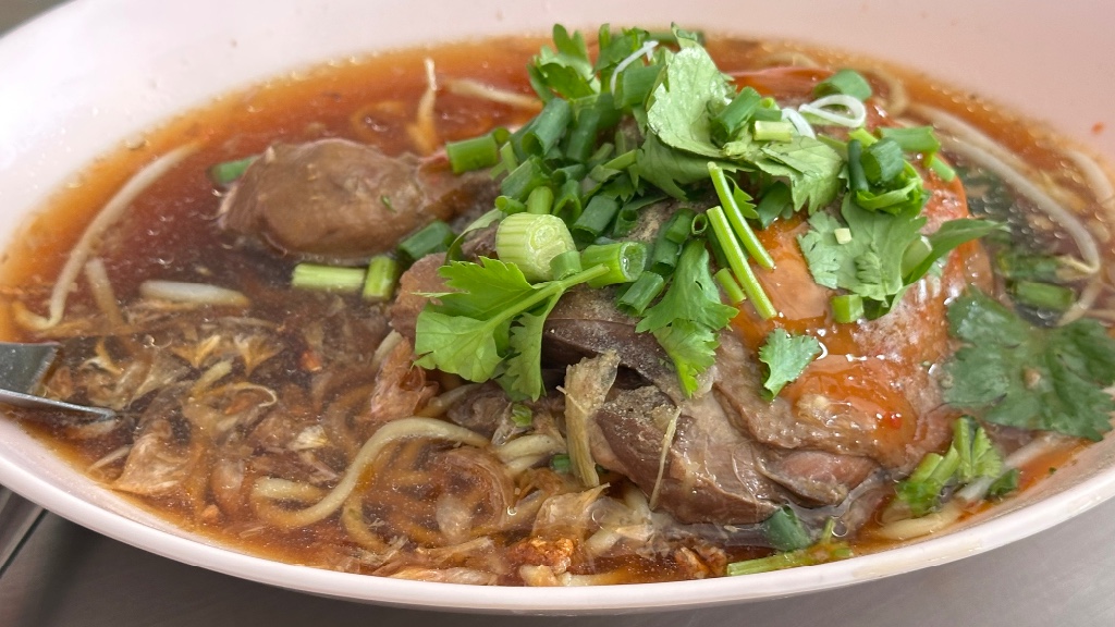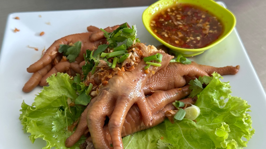 เมนูเด่นของร้านก็คือก๋วยเตี๋ยวเดินดงเป็นก๋วยเตี๋ยวแห้งจะเลือกใส่เนื้อ ใส่หมู หรือรวมก็ได้ มาพร้อมน้ำราดแบบน้ำจิ้มซีฟู๊ดสูตรเด็ดของร้านรสออกเปรี้ยวหวานเค็มเผ็ด และผักเคียงสดๆ หลายอย่างไว้กินคู่กัน อีกเมนูที่ลองก็คือก๋วยเตี๋ยวไก่ตุ๋นน้ำแดงน้ำซุปรสหวานนำ ไก่เปื่อยนุ่ม กับอีกเมนูที่สั่งมากินเล่น คือตีนไก่ตุ๋นลำใยอันนี้ก็ออกหวานมาพร้อมน้ำจิ้มแบบเดียวกับก๋วยเตี๋ยวเดินดง ตีนไก่เปื่อยนุ่มกินเพลิน