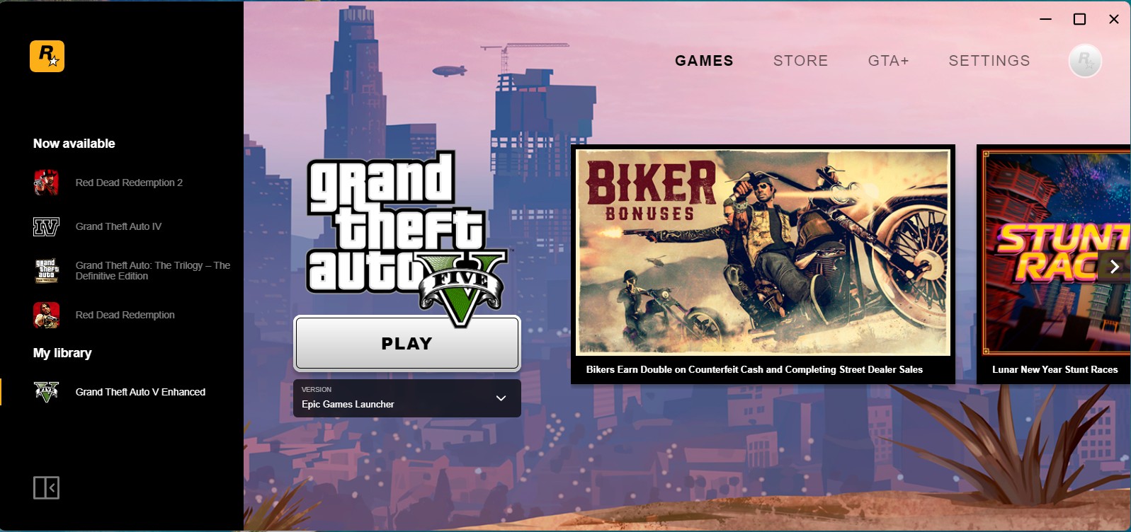 ก่อนอื่นเลย ผมได้ลง GTAV ผ่าน Epic Games ตามปกติ เสร็จแล้ว ผมก็เข้าเล่นผ่านระบบ Epic Games เลย แล้วมันก็ดีดไปที่ Rockstar ทันที (ตามภาพ)